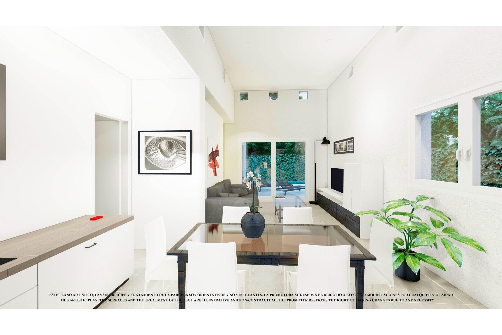 Villa with 3 bedrooms and 2 bathrooms, open plan kitchen with the lounge area, fitted wardrobes, solarium, private garden with off road parking space and space for a swimming pool.