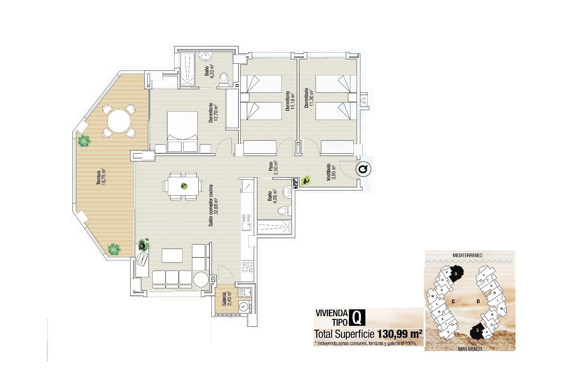 New Build residential complex is located in a unique and special place, between two seas, in a privileged location and with all the services you may need at your fingertips in the Region of Murcia, beautiful coastline with the beaches of transparent and shallow waters.