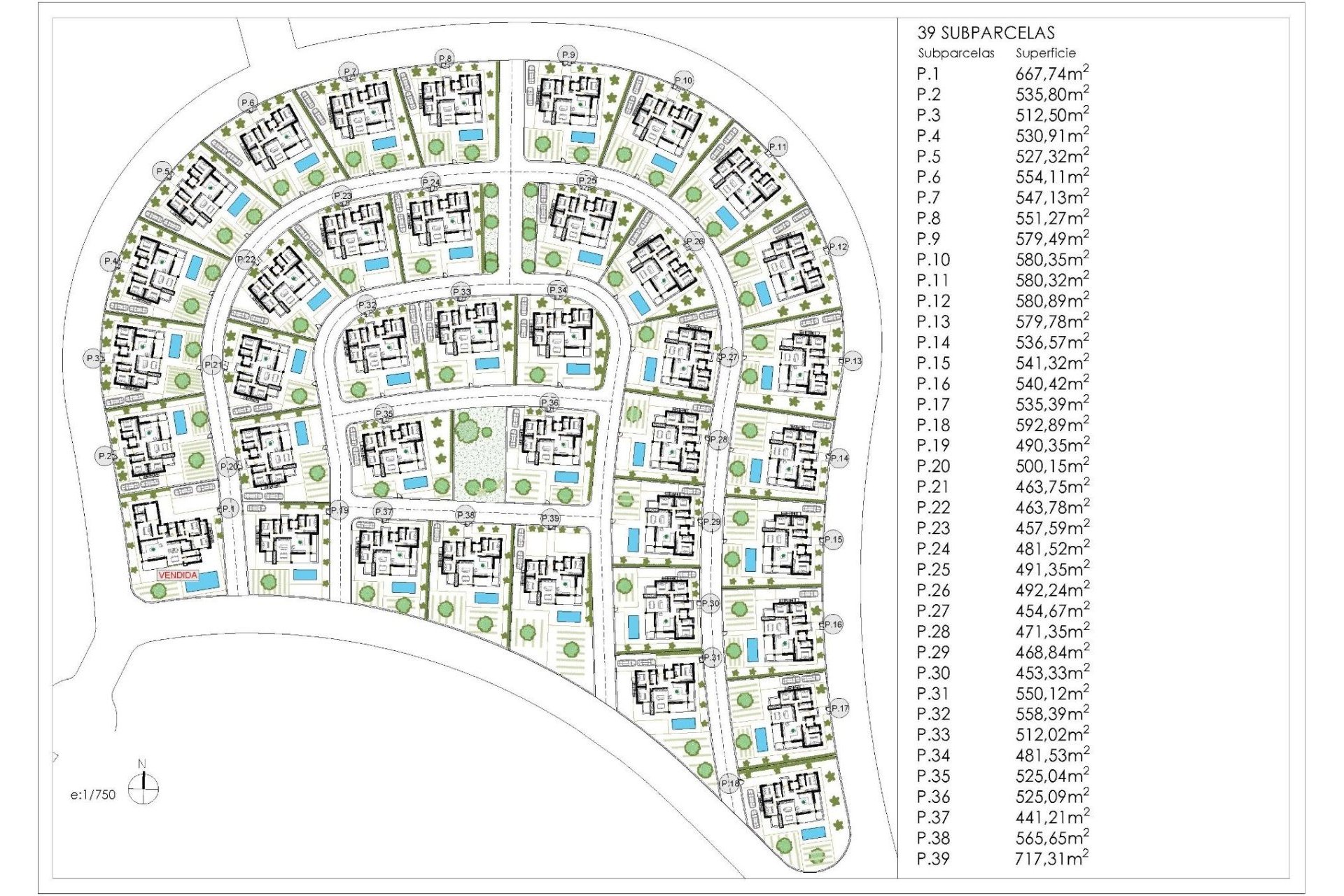 El residencial está compuesto por 39 villas en parcelas a partir de 436 m2. Todas las viviendas cuentan con 3 dormitorios y 2 baños completos en una sola planta, además de una zona de terraza con piscina privada y un solarium privado en la azotea con vistas al campo de golf.