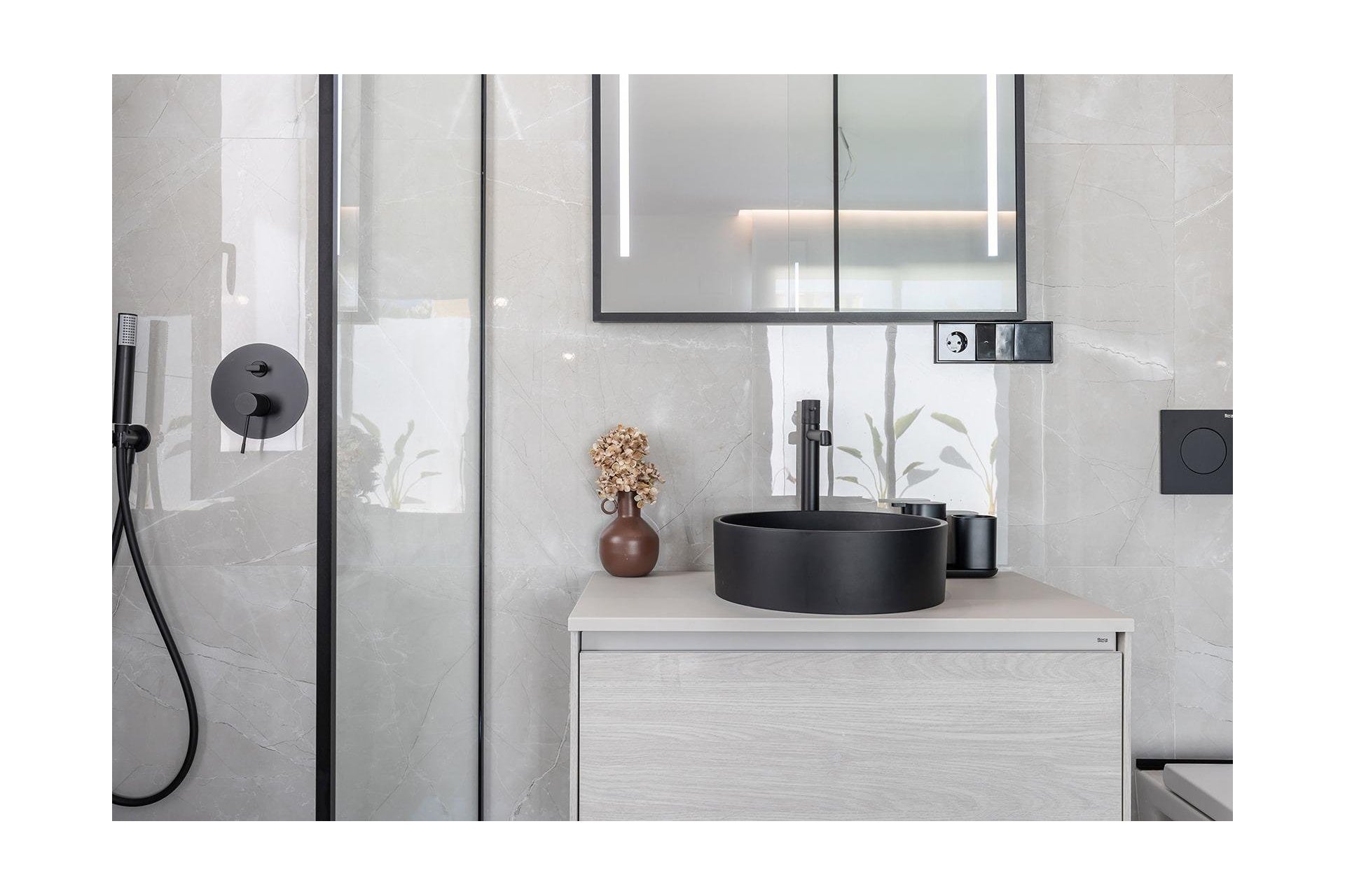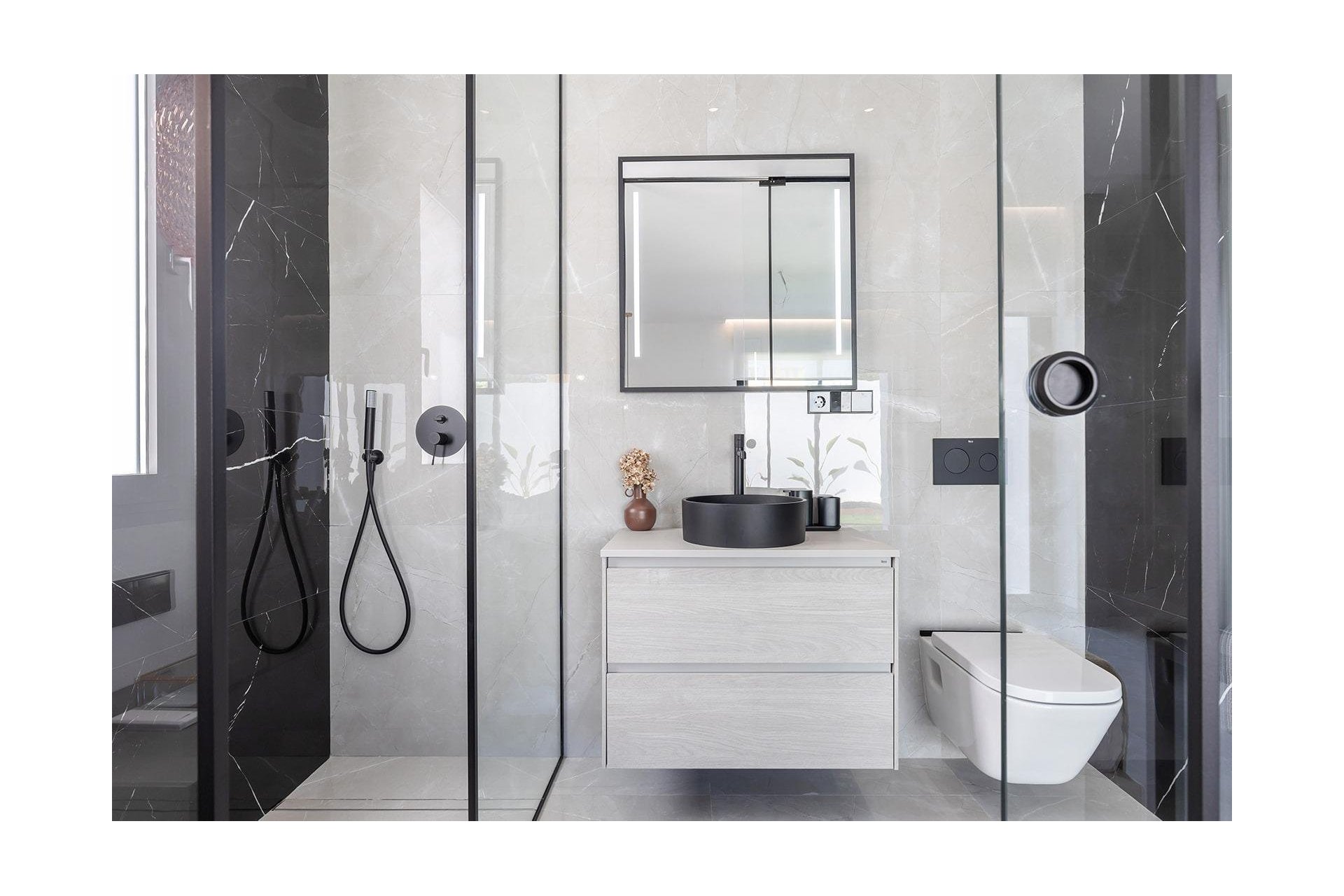 Calefacción por suelo radiante en los baños, que garantiza el confort durante todo el año.