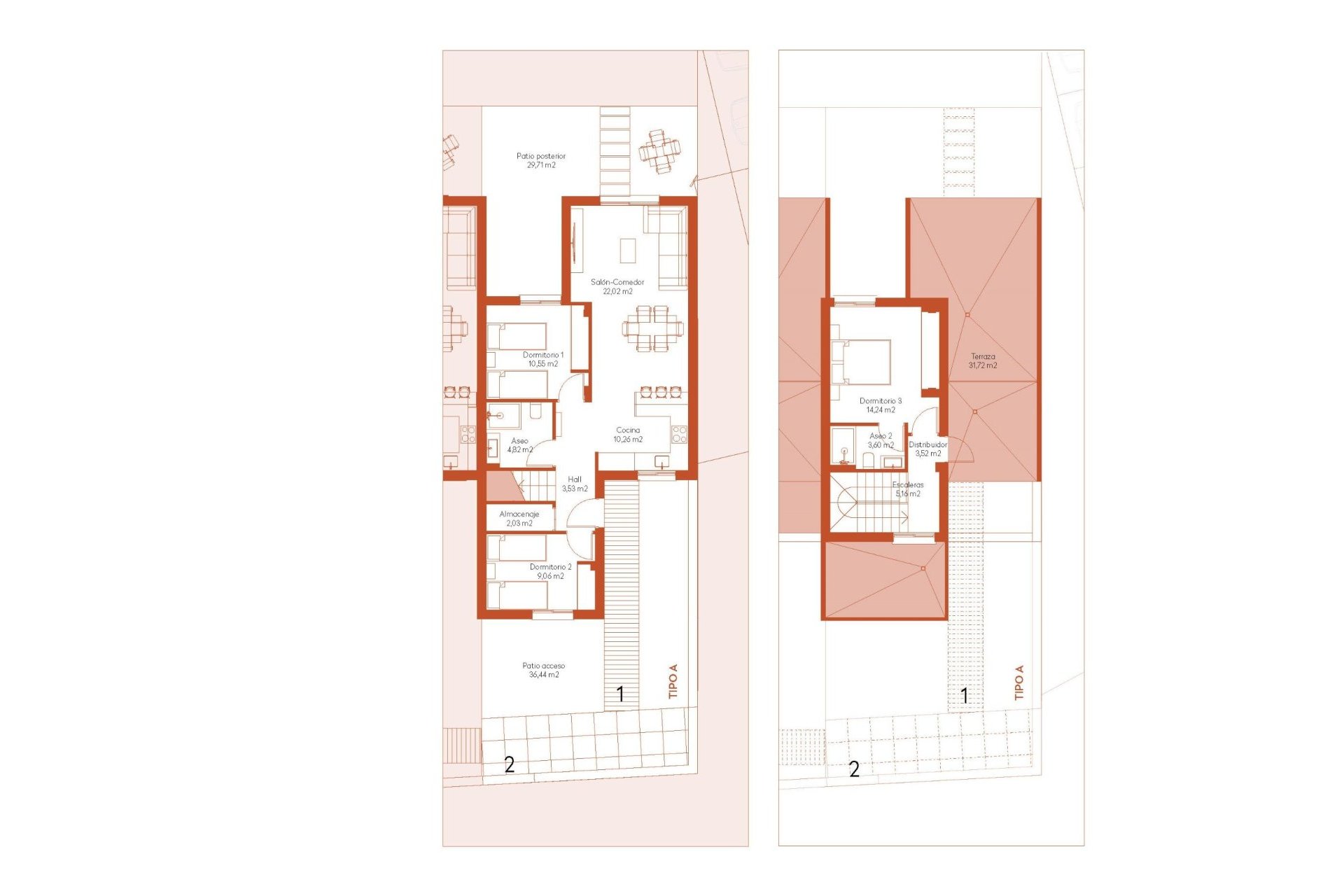 Casas soleadas diseñadas con un estilo de vida al aire libre en mente, cuenta con 3 dormitorios, 2 baños, cocina abierta con zona de estar, terrazas, jardines delanteros y traseros con espacio para una piscina.