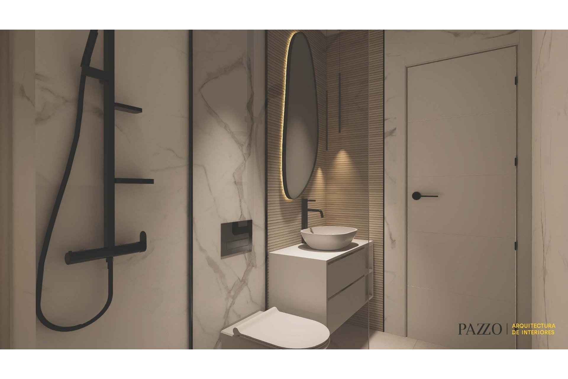 Baños totalmente equipados con muebles y mamparas de ducha.