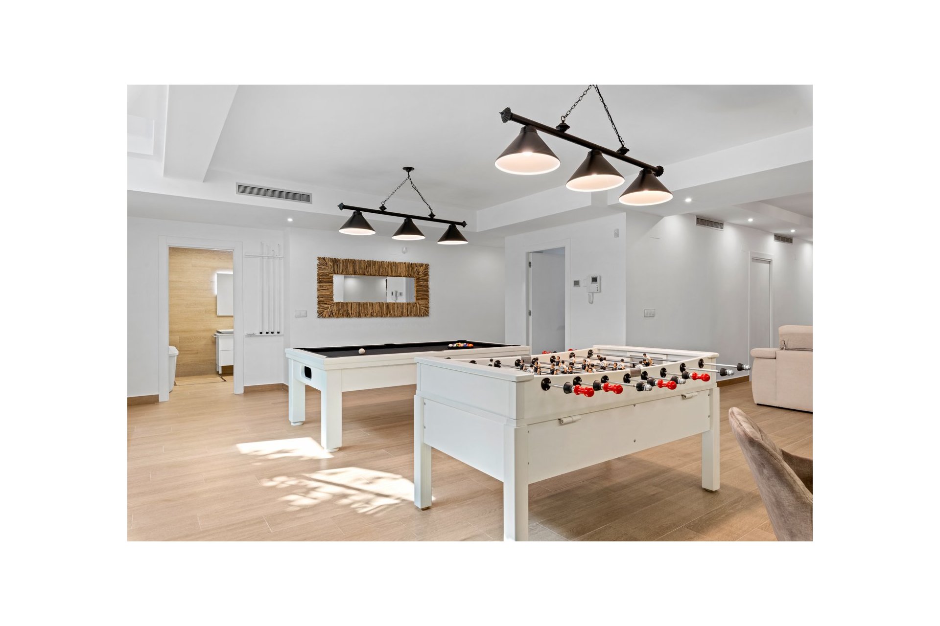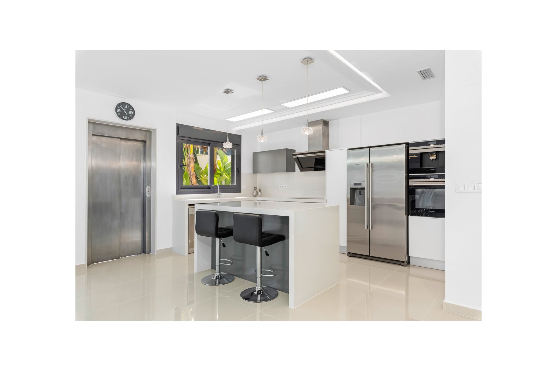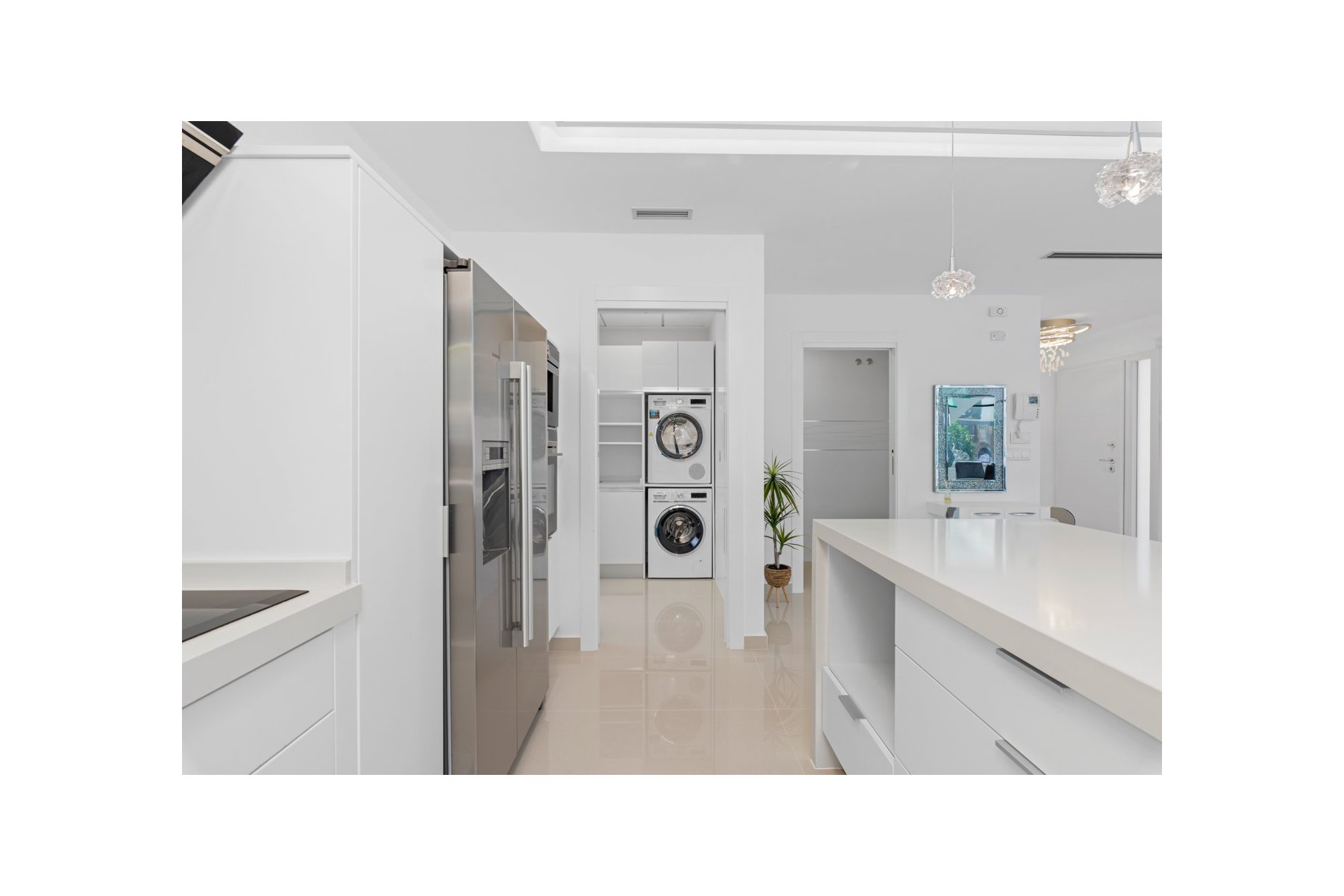 Posiada klimatyzację, własny parking na kilka pojazdów, centralne ogrzewanie z ogrzewaniem podłogowym w całym domu i jest na sprzedaż umeblowane designerskimi meblami i wyposażone, z wyjątkiem rzeczy osobistych.