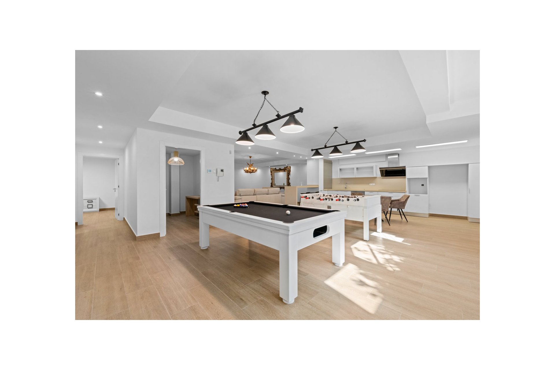 Ta niedawno wybudowana luksusowa posiadłość ma w sumie 5 sypialni i 4 łazienki, rozmieszczone na dwóch piętrach i piwnicy, z praktyczną windą, która komunikuje się ze wszystkimi piętrami domu i pięknymi szklanymi schodami z oświetleniem wewnętrznym. W piwnicy znajduje się pokój gier (z bilardem i piłkarzykami), sala na uroczystości z w pełni wyposażoną kuchnią, 2 sypialnie, 2 pomieszczenia gospodarcze i pełna łazienka. Na parterze znajduje się salon-jadalnia z otwartą kuchnią i centralną wyspą, główna sypialnia z łazienką oraz pralnia i toaleta. Na piętrze znajdują się 2 przestronne sypialnie, 2 łazienki oraz wyjście na balkony. Na najwyższym piętrze znajduje się niesamowite solarium o powierzchni 70 m2 z imponującymi widokami panoramicznymi.