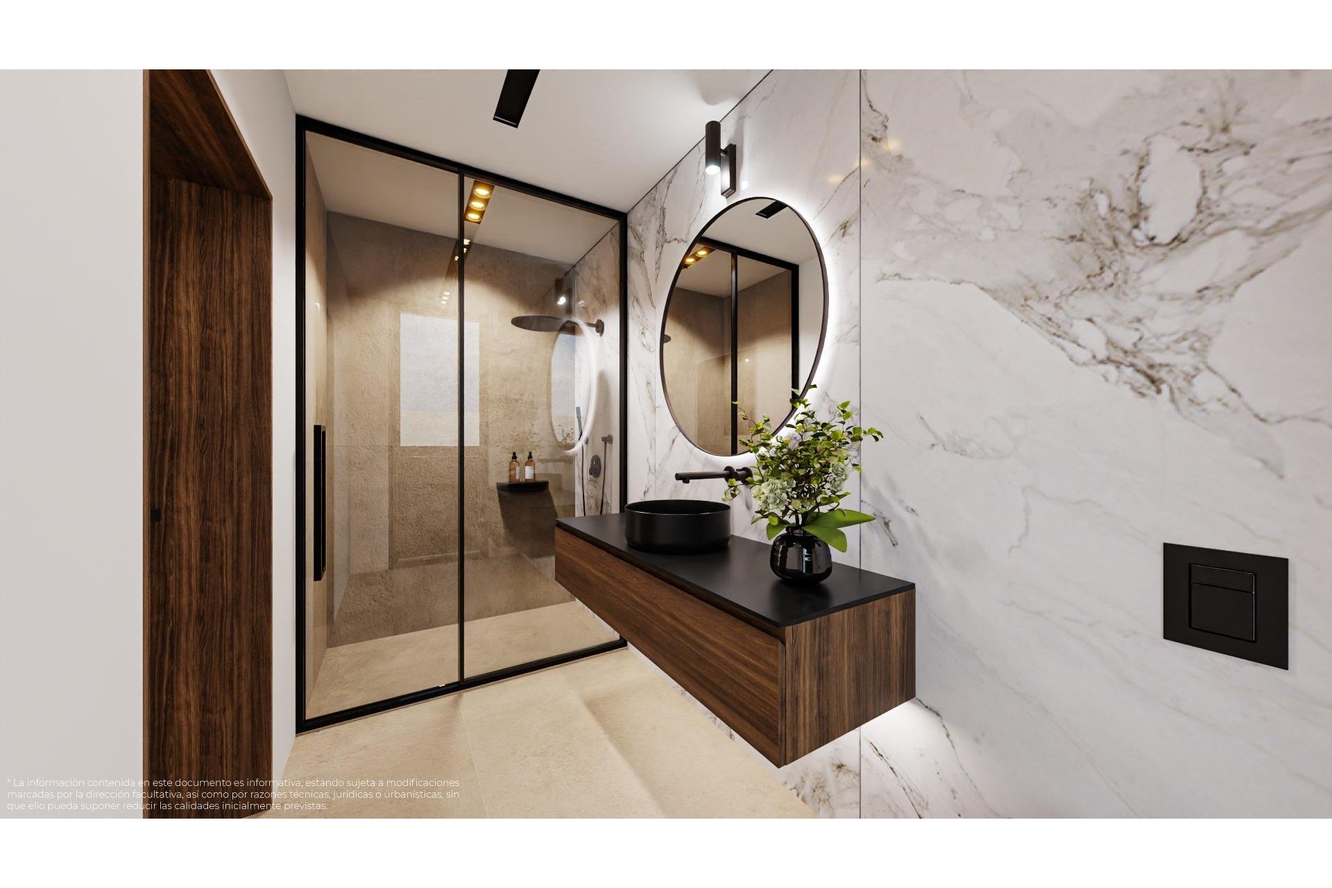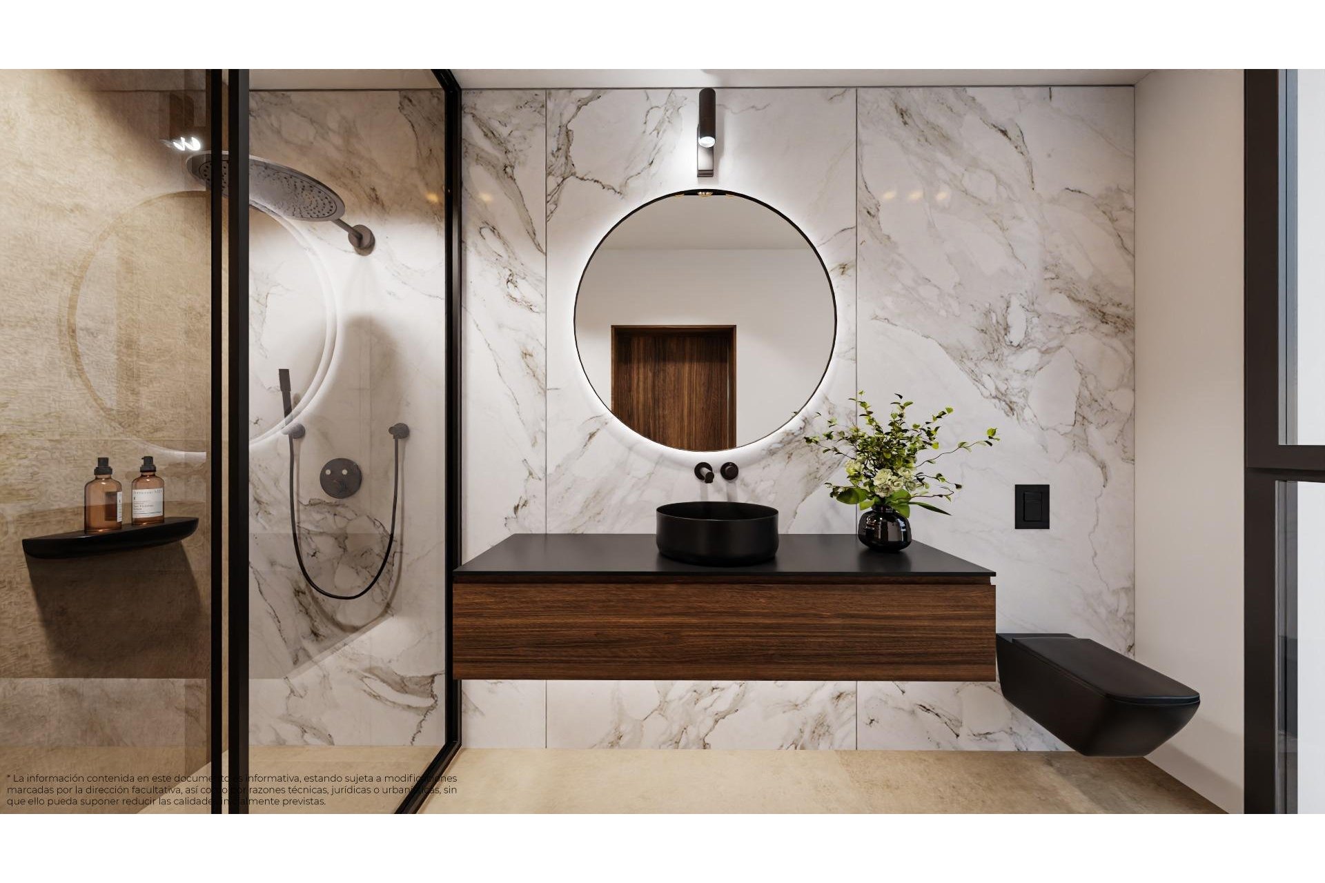 Designerskie łazienki z oświetleniem LED, podwieszanymi szafkami i przesuwanymi szklanymi ekranami prysznicowymi