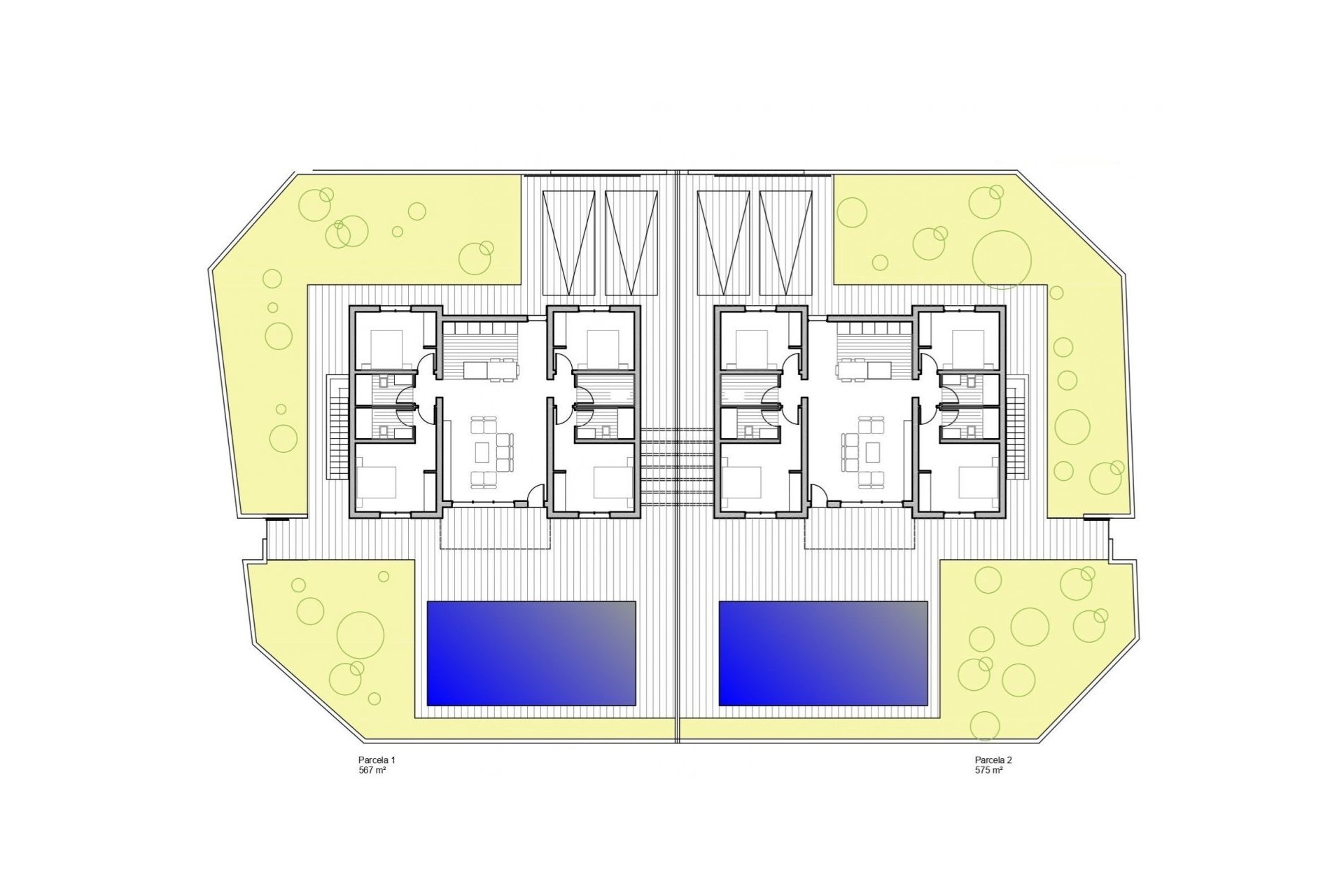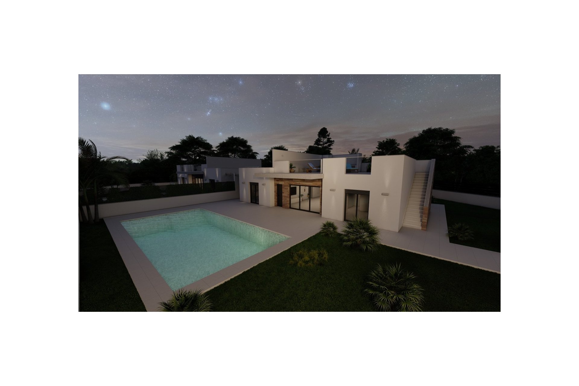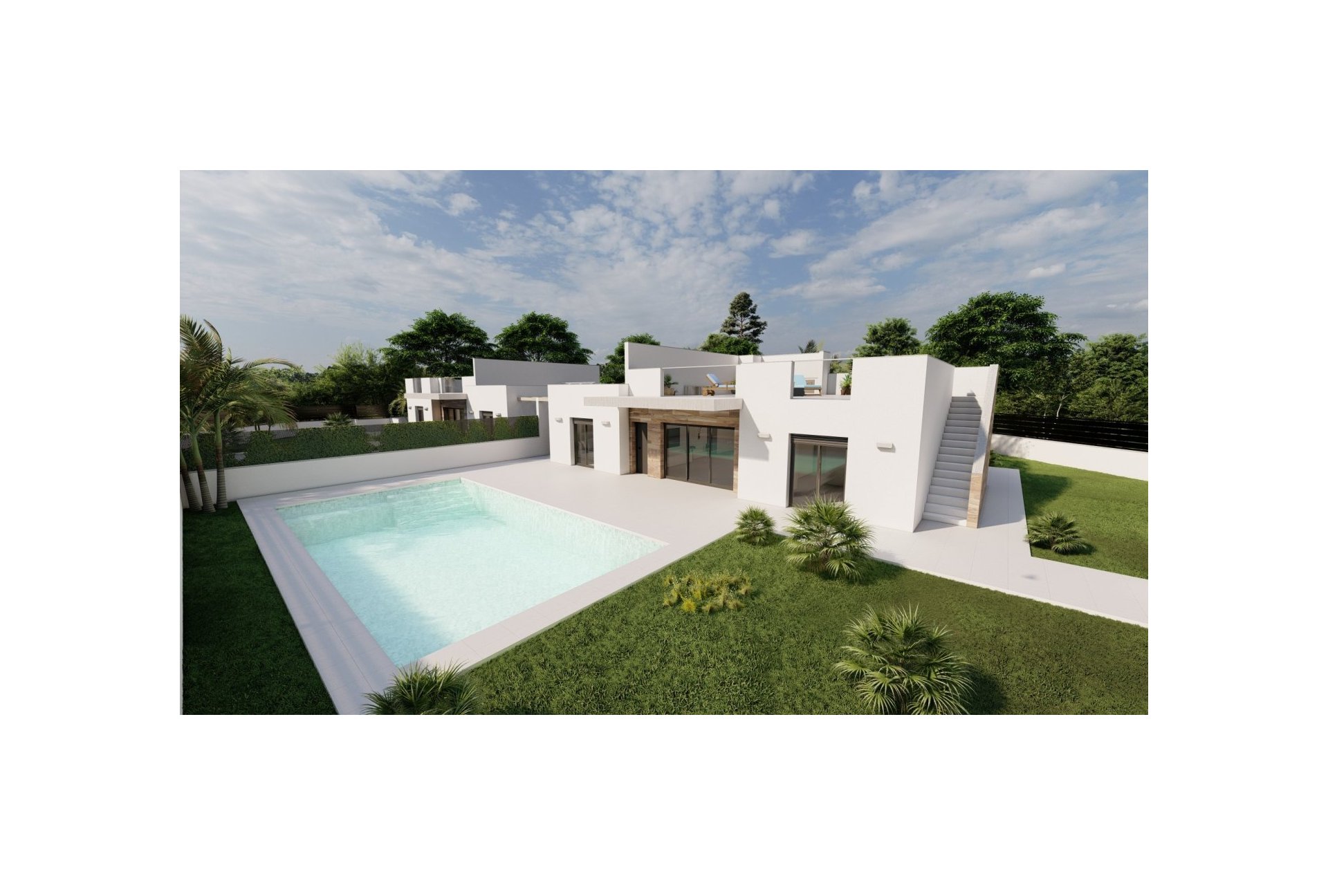 Wille budowane na działkach o powierzchni prawie 600 M2 każda, z prywatnym basenem o powierzchni 30 M2, terenem ogrodowym i dużym solarium na dachu.