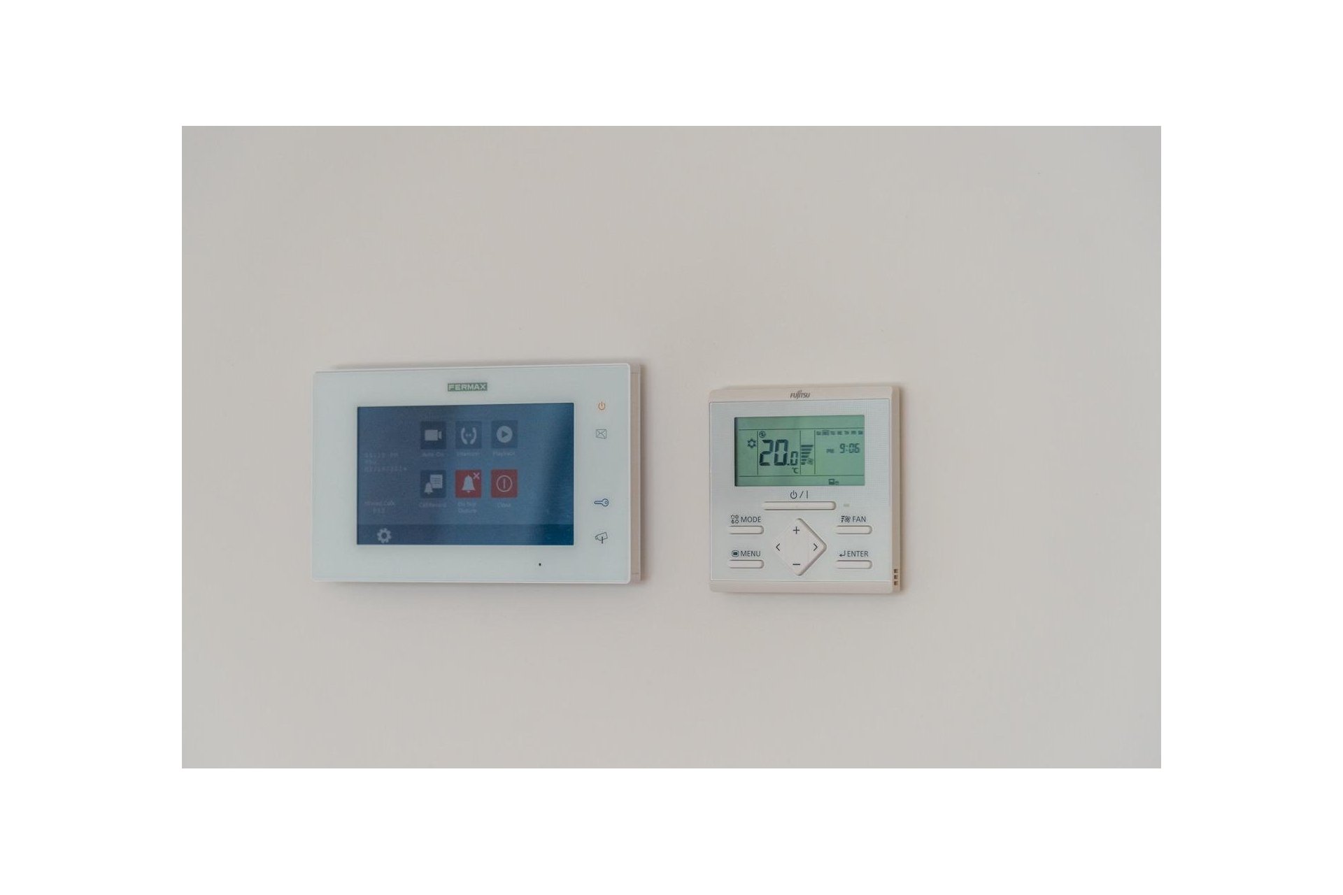 W pełni wyposażona kuchnia w białym połysku lub kolorze drewna. Kwarc technologiczny. Zlewozmywak ze stali nierdzewnej. Płyta indukcyjna ze zintegrowanym wentylatorem wyciągowym, piekarnik, kuchenka mikrofalowa, pralka, zintegrowana lodówka, zintegrowana zmywarka.