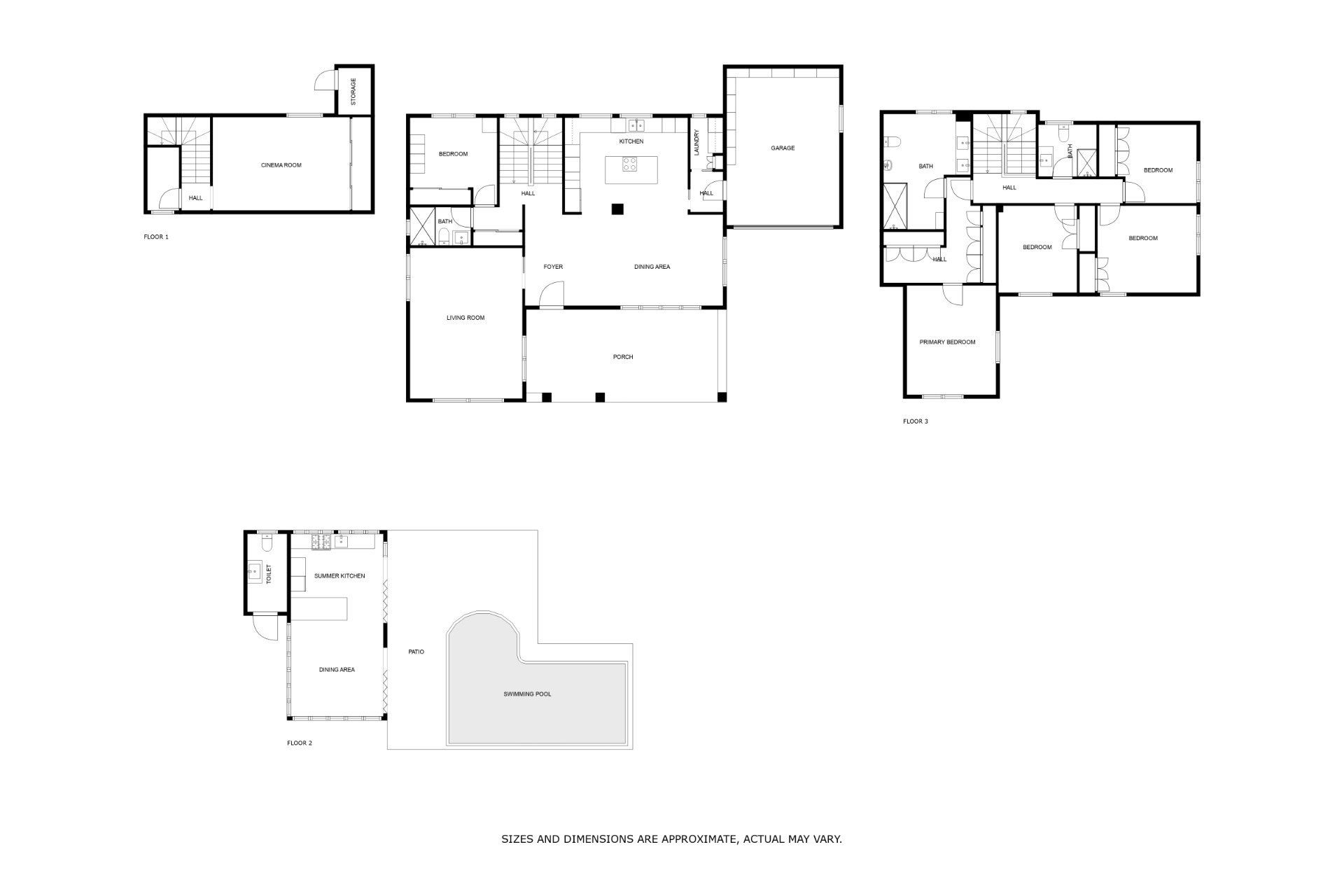 Willa jest rozłożona na trzy poziomy i składa się z łącznie 5 dwuosobowych sypialni oraz 3 łazienek. Na głównym piętrze znajduje się przestronny i jasny salon, hol wejściowy, otwarta jadalnia oraz kuchnia. Kuchnia posiada wyspę i bezpośrednie przejście do pralni oraz garażu. Na tym poziomie znajduje się również łazienka oraz sypialnia, która obecnie jest wykorzystywana jako biuro.
