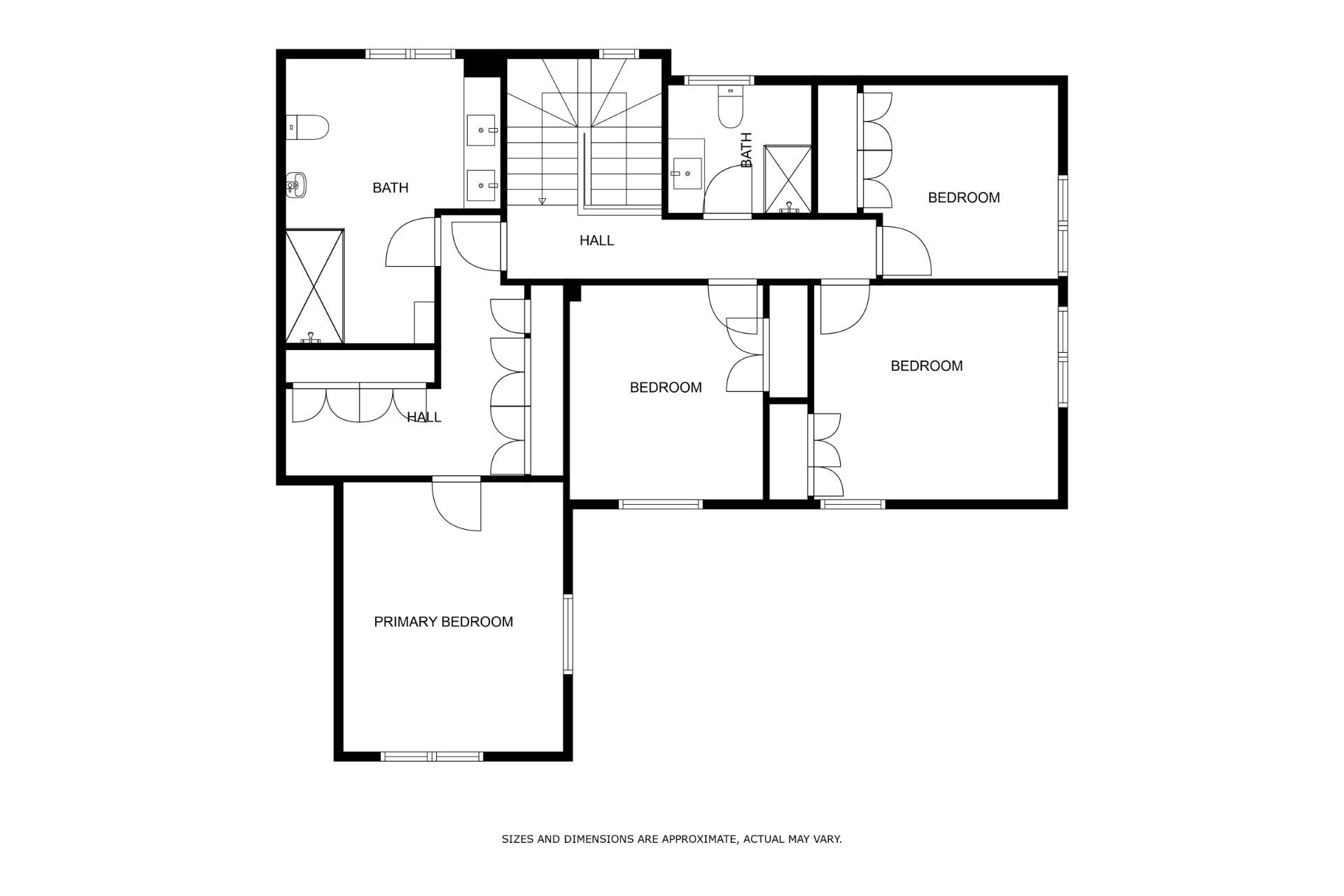 Na pierwszym piętrze znajdują się 4 dwuosobowe sypialnie oraz 2 łazienki, z których główna sypialnia posiada dużą łazienkę en-suite oraz garderobę. Pozostałe sypialnie wyposażone są w zabudowane szafy.