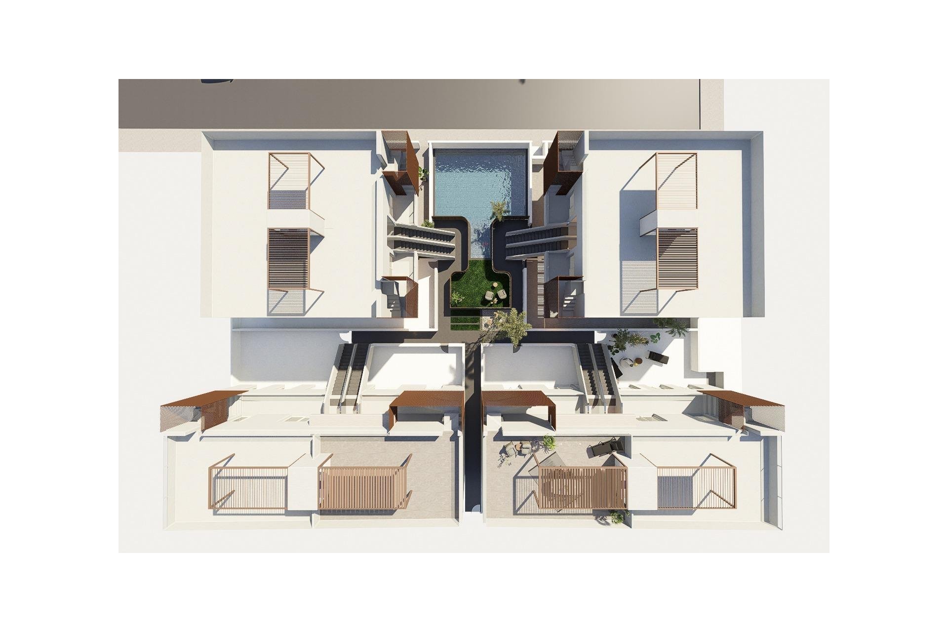 Odkryj tę ekskluzywną nową inwestycję 16 nowoczesnych bungalowów położonych w Pilar de la Horadada, uroczym miasteczku w najbardziej wysuniętej na południe części Costa Blanca. Kompleks mieszkaniowy oferuje nieruchomości z 2 lub 3 sypialniami i 2 w pełni wyposażonymi łazienkami, zaprojektowane z myślą o połączeniu komfortu, funkcjonalności i śródziemnomorskiego stylu.