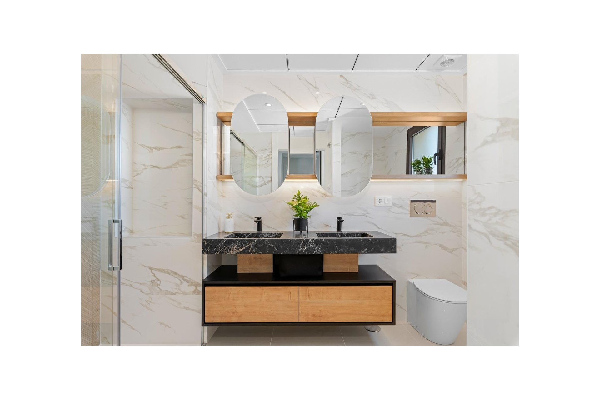 Willa zbudowana na 2 piętrach, posiada salon-jadalnię z kuchnią na otwartym planie, 3 sypialnie i 3 łazienki, duży taras, prywatny ogród, basen i miejsce parkingowe.