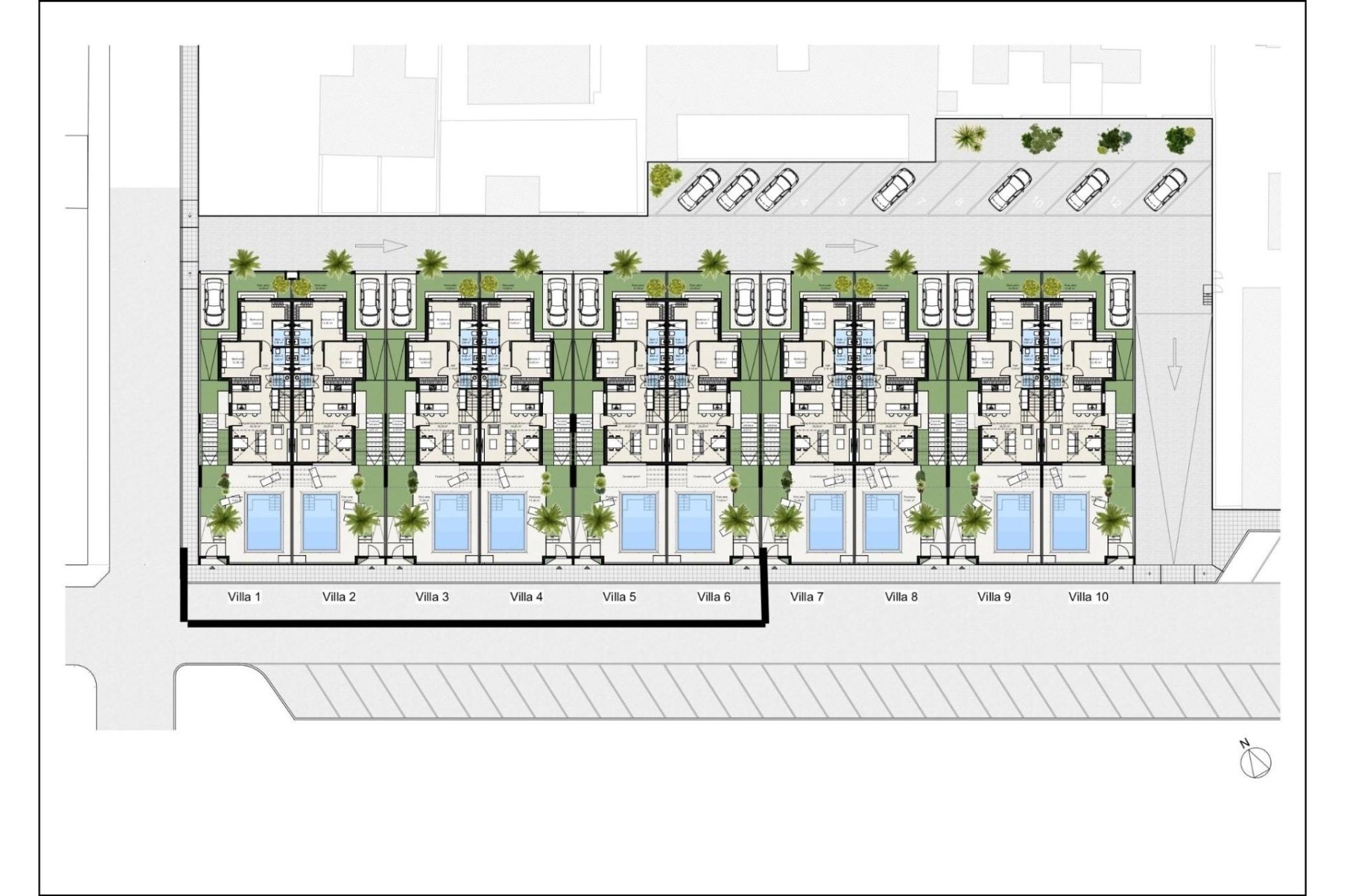 Oferujemy na sprzedaż 6 willi z 3 sypialniami i 3 łazienkami.