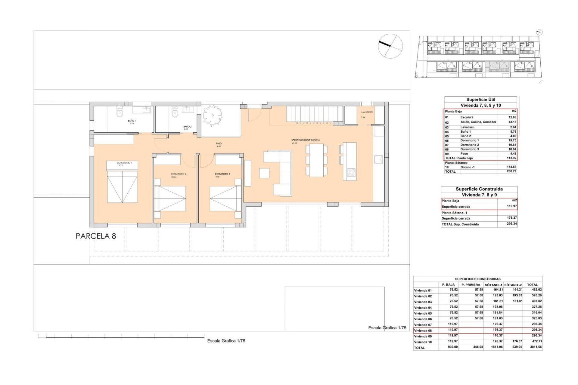 Projekt zostanie podzielony na dwa etapy budowy, które z kolei obejmują dwa rodzaje domów, z 1 lub 2 piętrami, 3 sypialniami dwuosobowymi, 2 lub 3 kompletnymi łazienkami, salonem-jadalnią ze zintegrowaną kuchnią, pralnią, dużym tarasem i ogrodem, prywatnym basenem, parkingiem zewnętrznym, 1 lub 2 wielofunkcyjnymi piwnicami oraz w niektórych modelach zamknięty garaż podziemny.