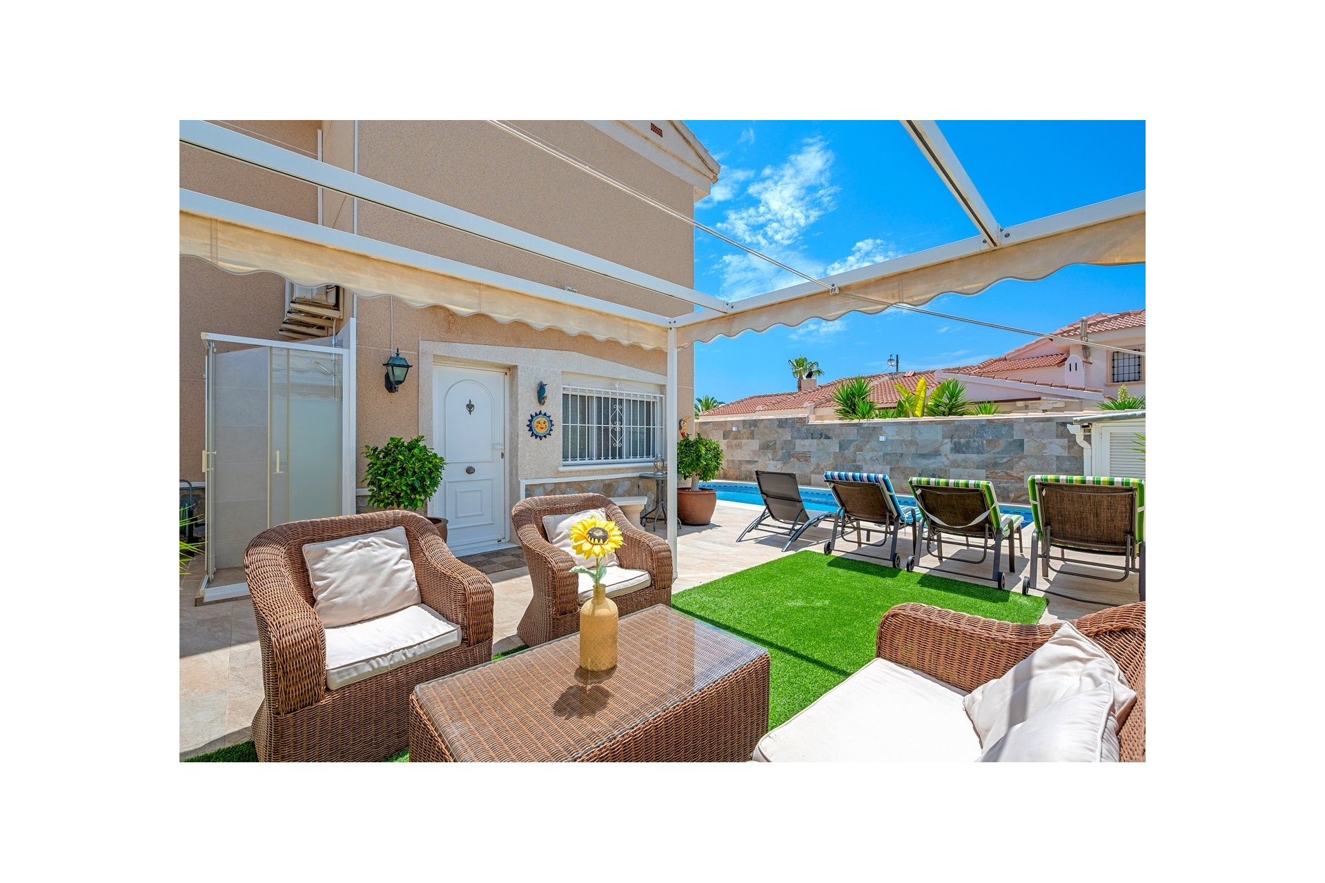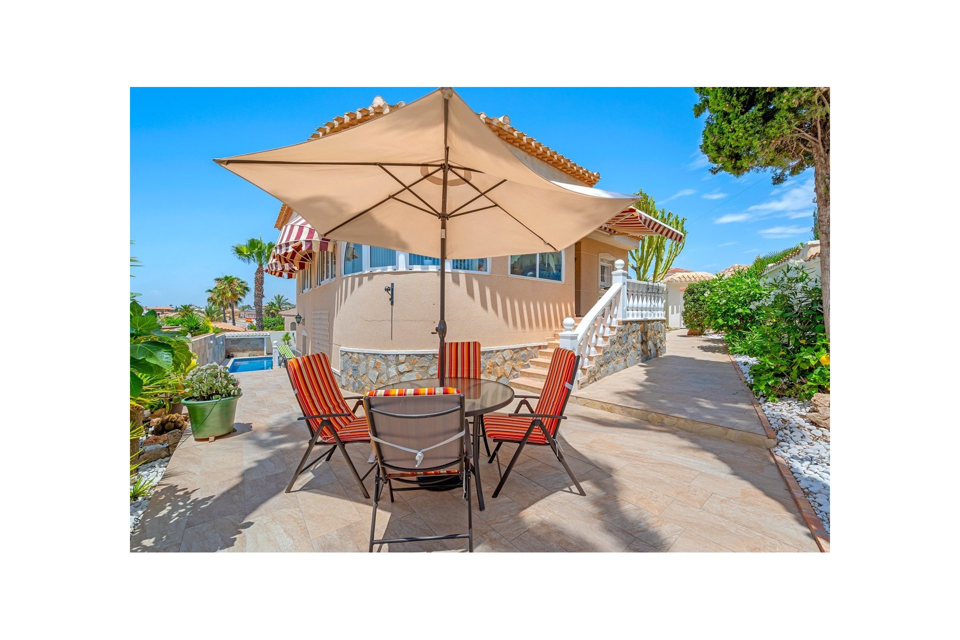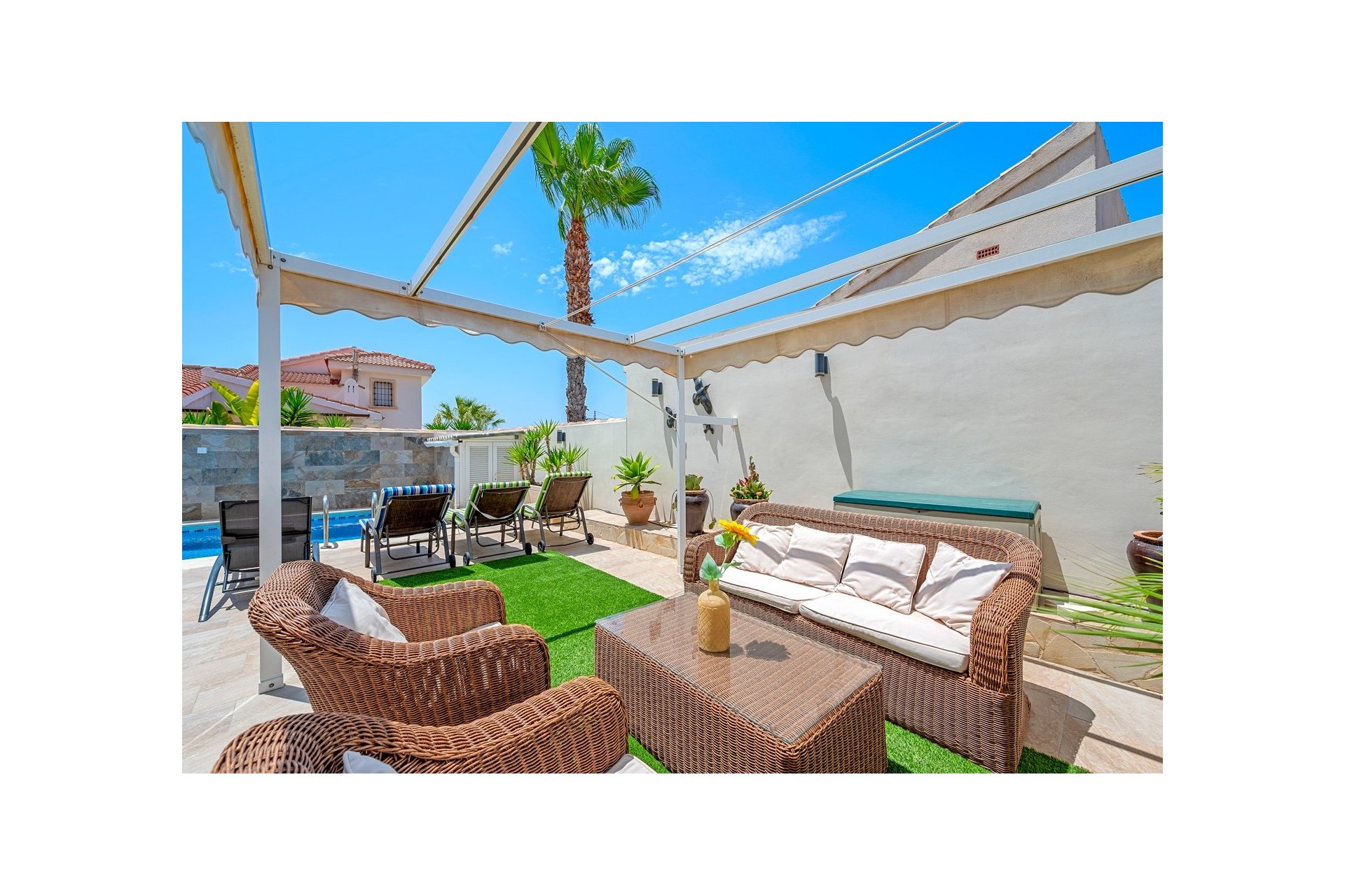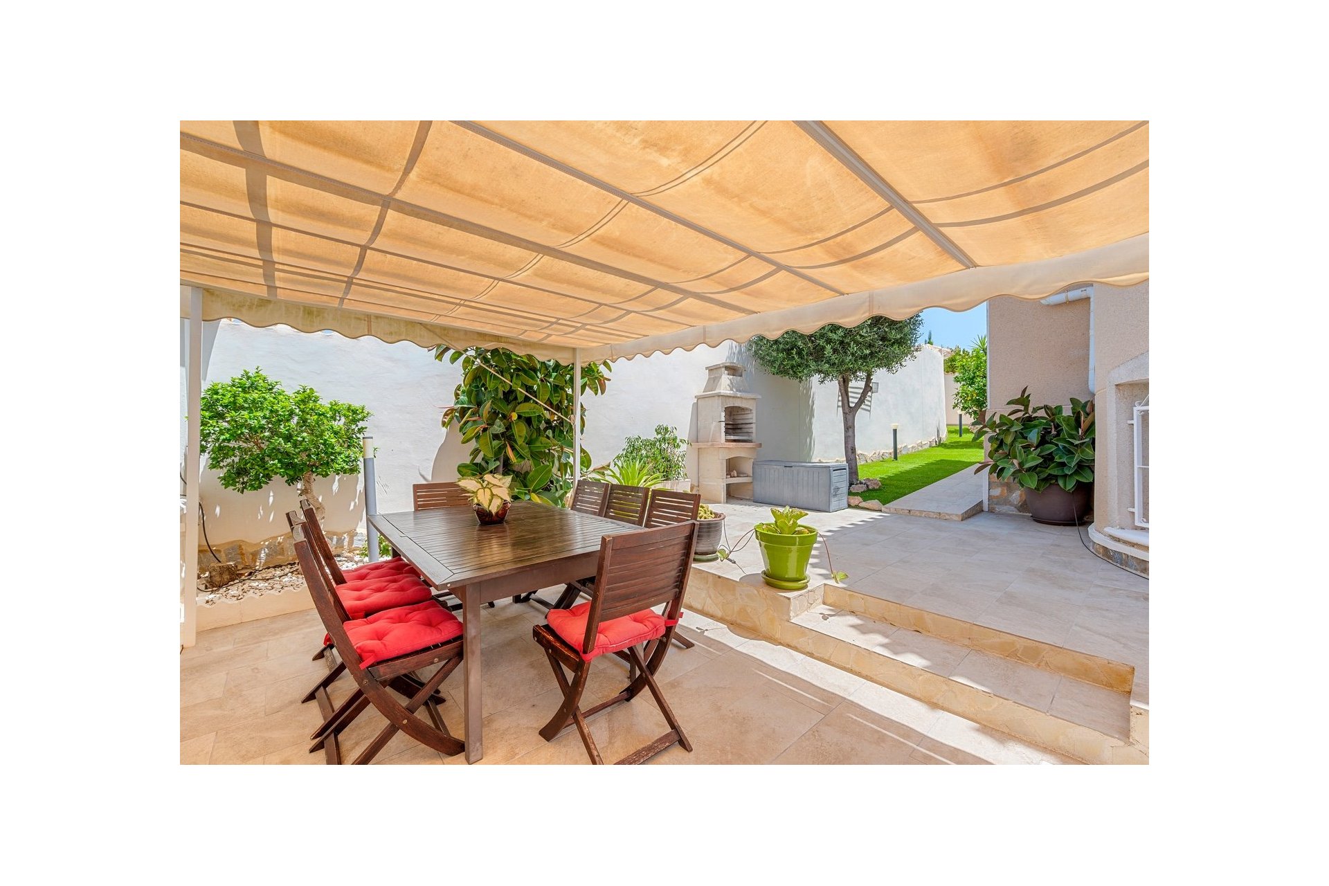 Willa usytuowana jest na działce o powierzchni 500 m², z ekspozycją południową. Ogród jest zadbany, wyłożony płytkami i obsadzony roślinami. Znajduje się tam basen ze słoną wodą, prysznic zewnętrzny, wiata garażowa, miejsce na grilla, schowek oraz kilka stref wypoczynkowych. Ogród posiada automatyczny system nawadniania.