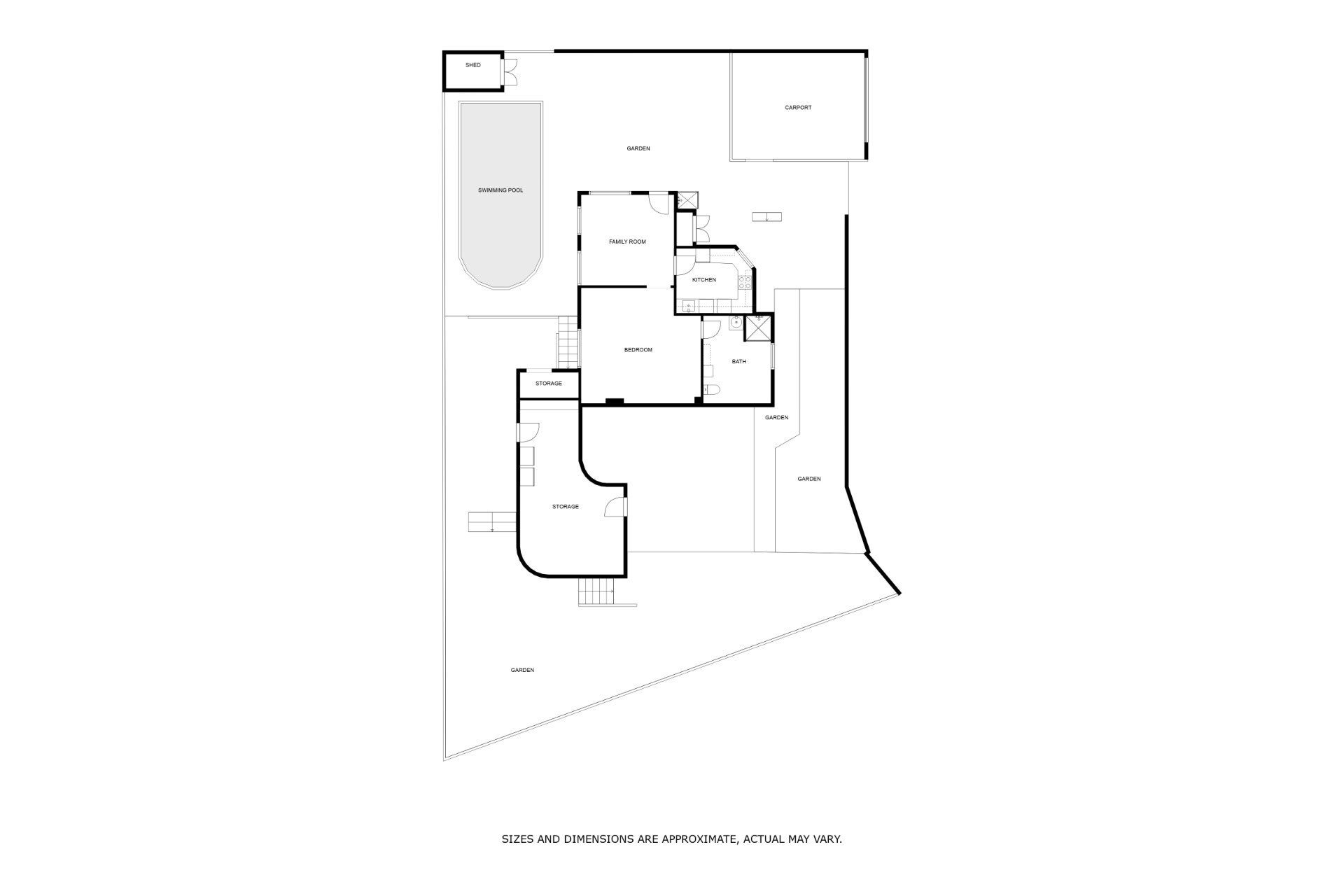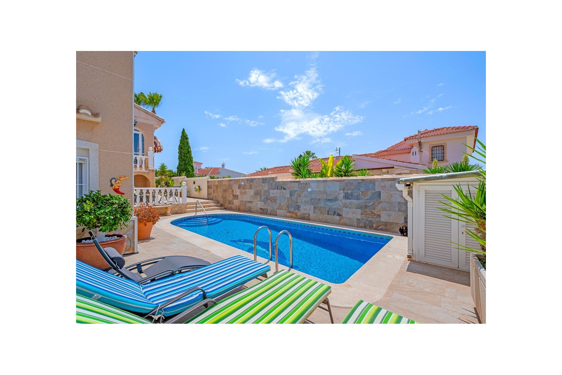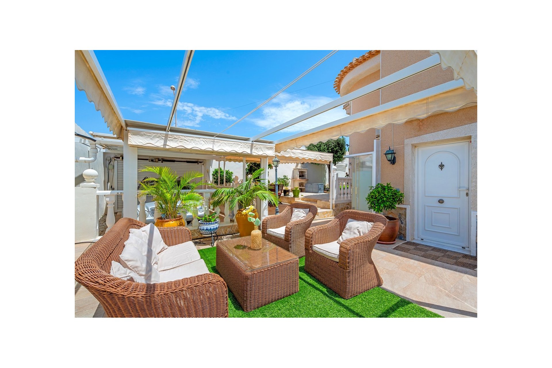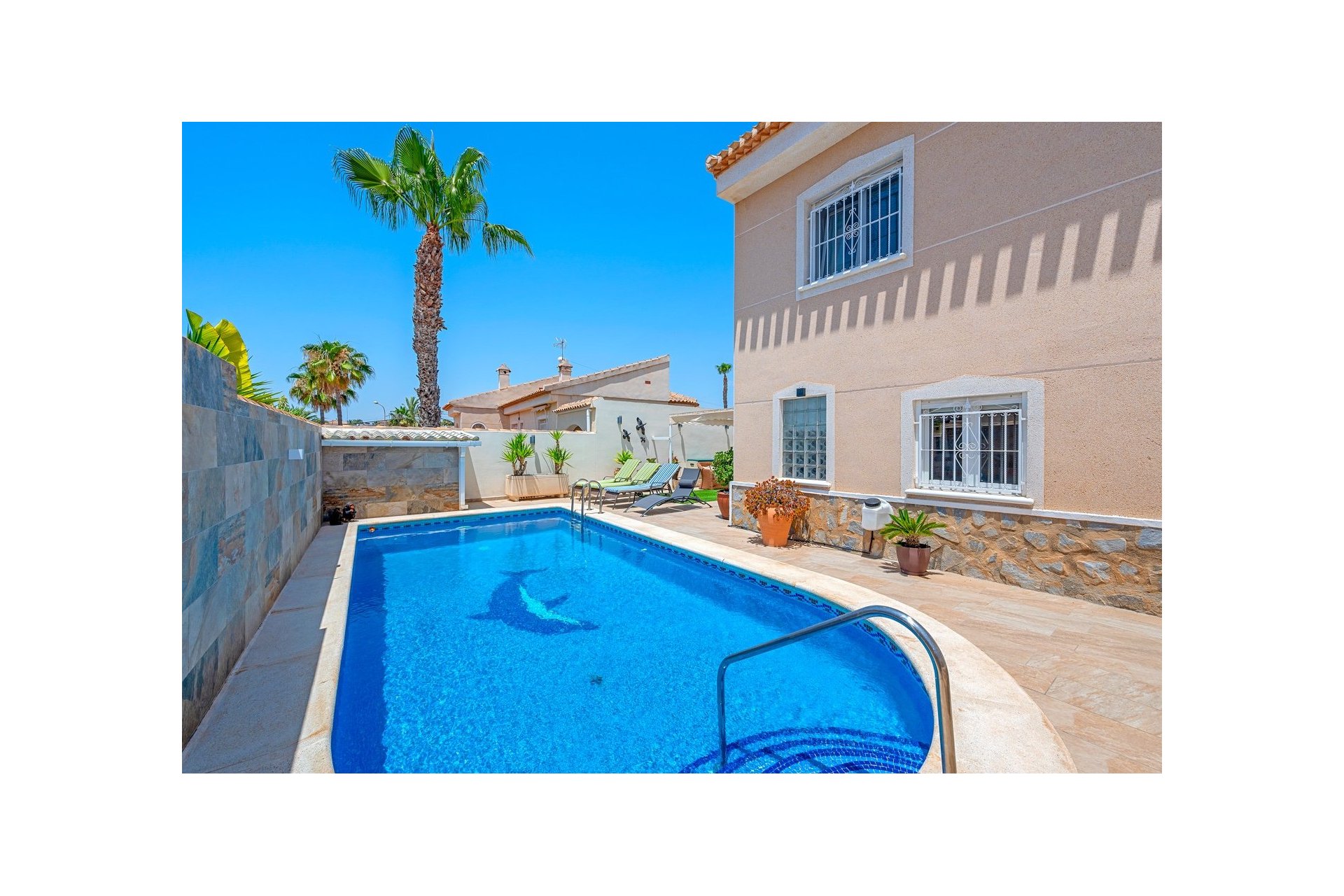 Willa usytuowana jest na działce o powierzchni 500 m², z ekspozycją południową. Ogród jest zadbany, wyłożony płytkami i obsadzony roślinami. Znajduje się tam basen ze słoną wodą, prysznic zewnętrzny, wiata garażowa, miejsce na grilla, schowek oraz kilka stref wypoczynkowych. Ogród posiada automatyczny system nawadniania.