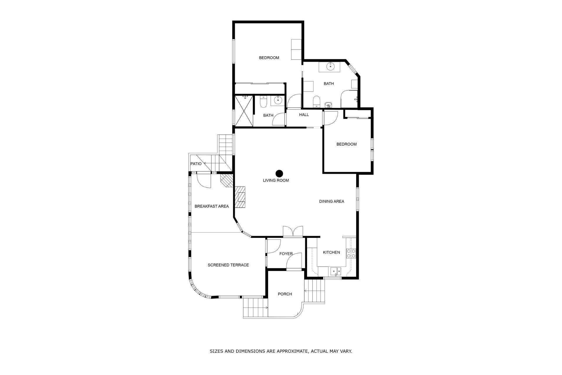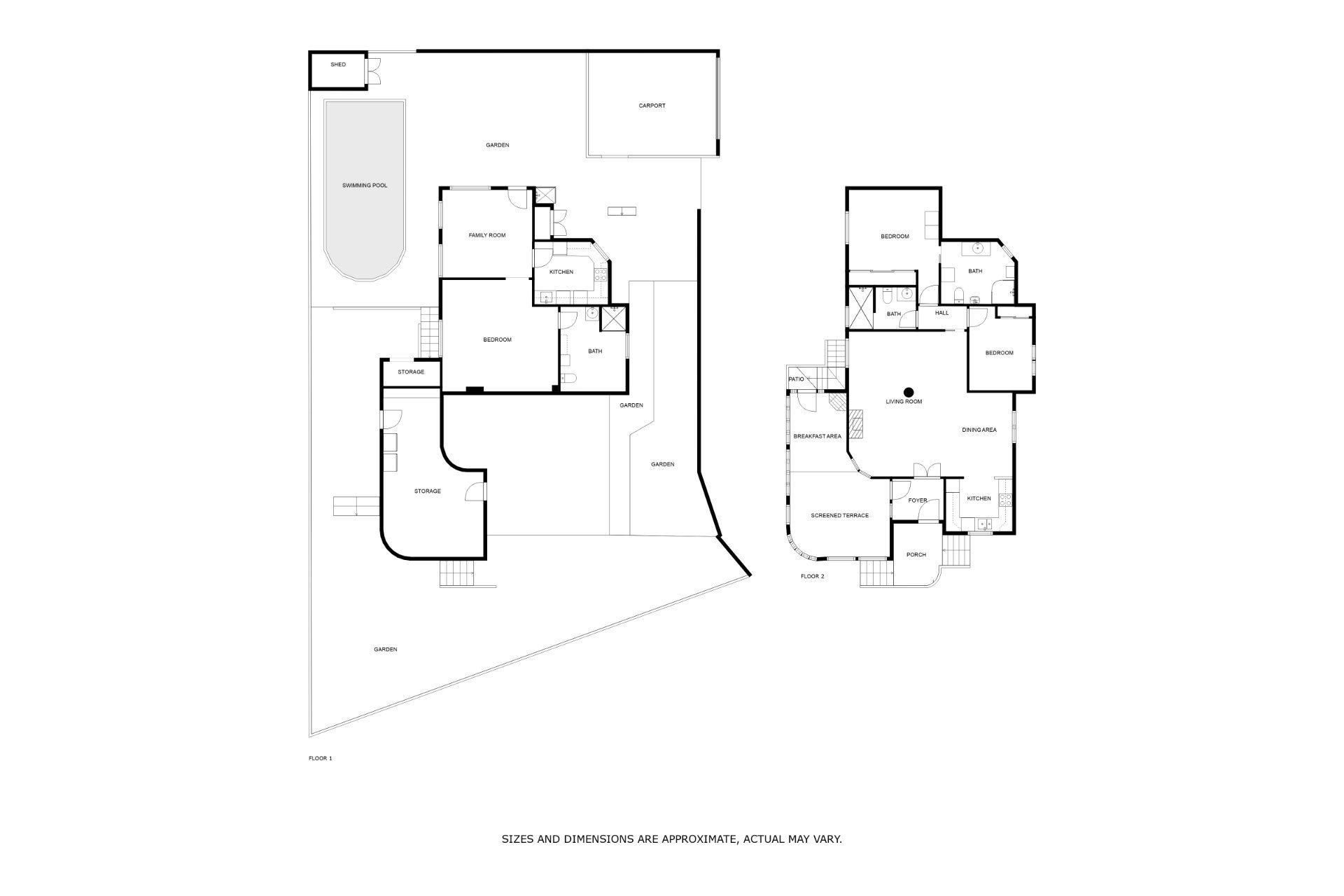 Willa ma całkowitą powierzchnię mieszkalną 238 m² podzieloną na dwa poziomy: główne piętro oraz apartament gościnny na dolnym poziomie. Na głównym piętrze znajdują się dwie sypialnie dwuosobowe i dwie łazienki, z czego jedna en-suite w sypialni głównej. Ponadto znajduje się tam hol wejściowy, kuchnia w stylu otwartym, jadalnia i salon z kominkiem oraz przeszklony taras z dodatkową jadalnią i salonem. Przy wejściu do willi znajduje się zadaszony taras, a z przeszklonego tarasu jest bezpośrednie wyjście do strefy basenowej.