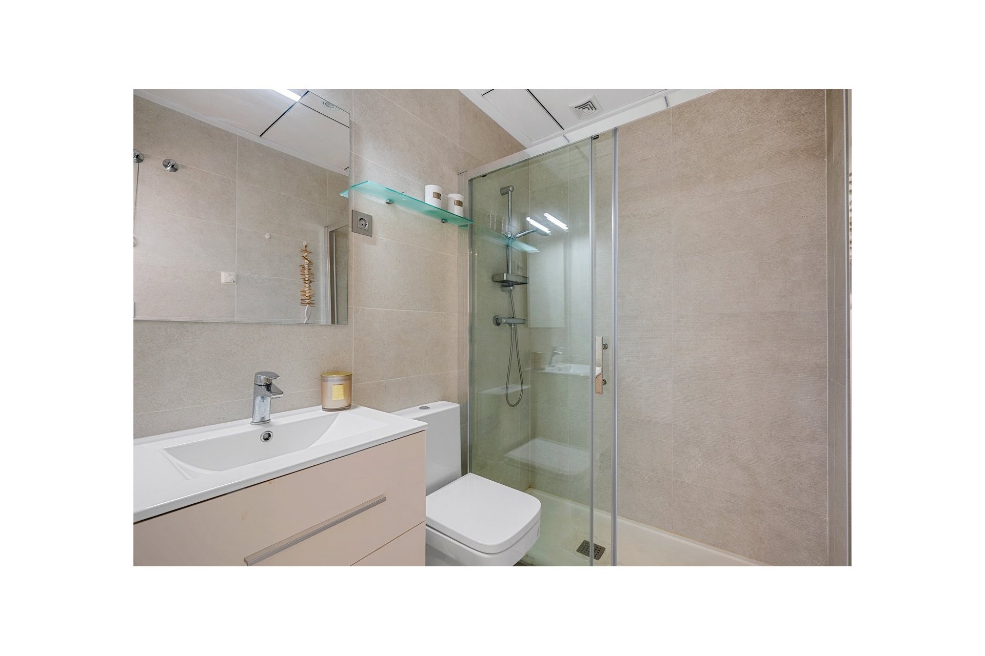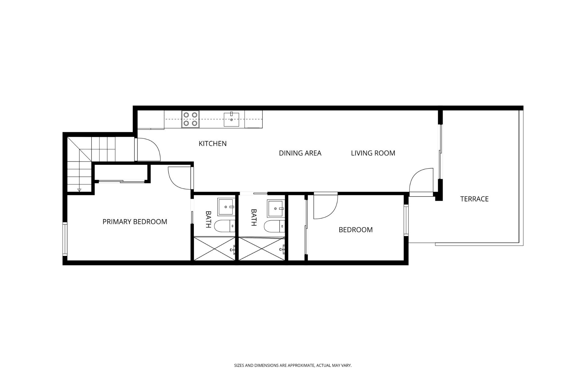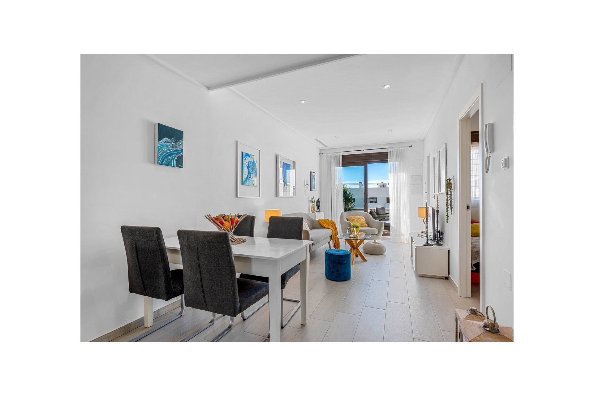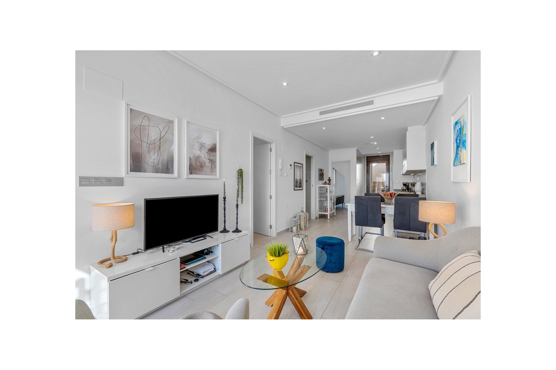 Mieszkanie ma powierzchnię 67 m², w której znajdują się dwie podwójne sypialnie i dwie nowoczesne łazienki; jedna z nich przynależy do sypialni głównej. Jest także jasna kuchnia w układzie otwartym połączona z jadalnią i salonem. Z kuchni jest bezpośrednie wyjście na taras na dachu, a z salonu – na piękny taras od strony południowej.