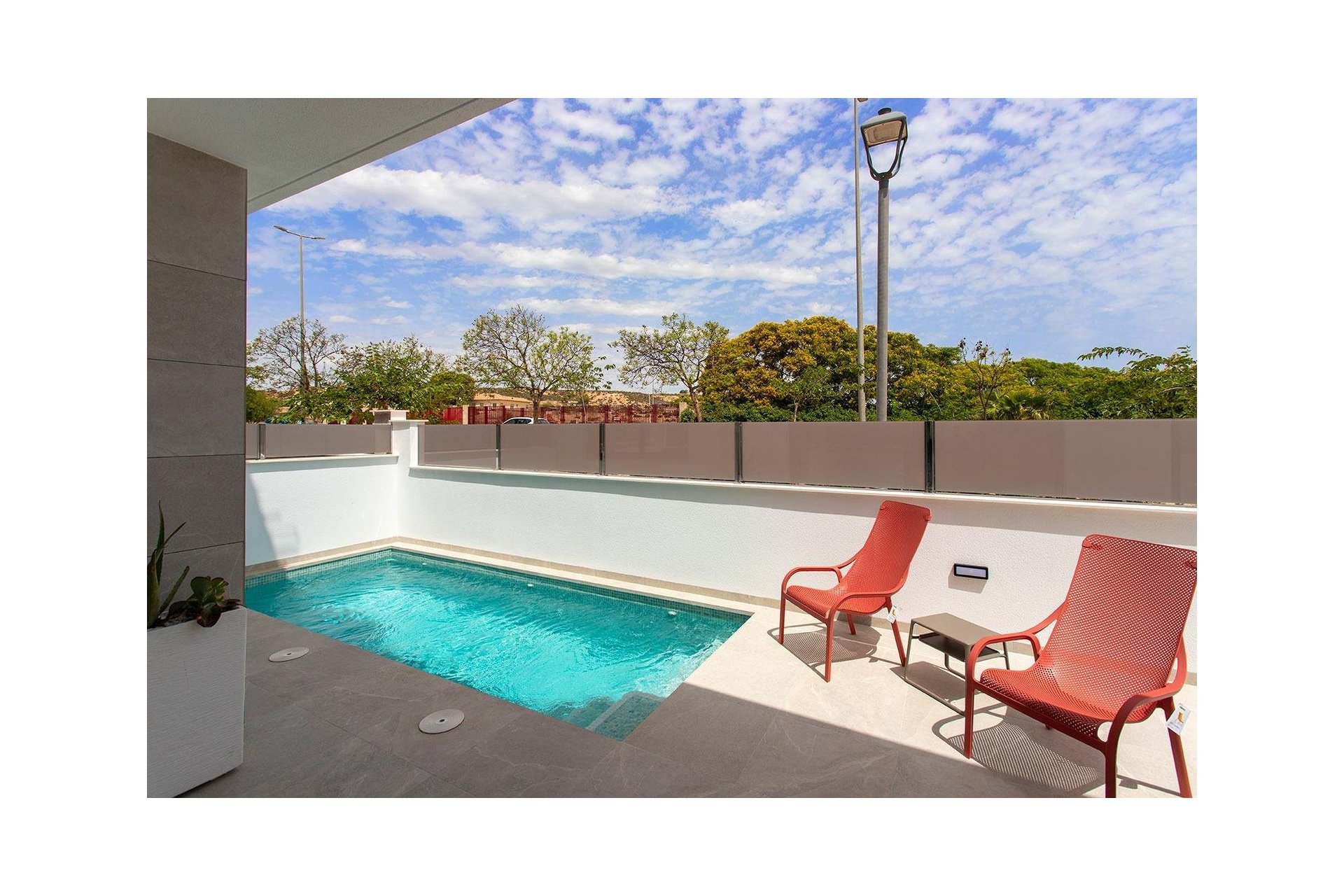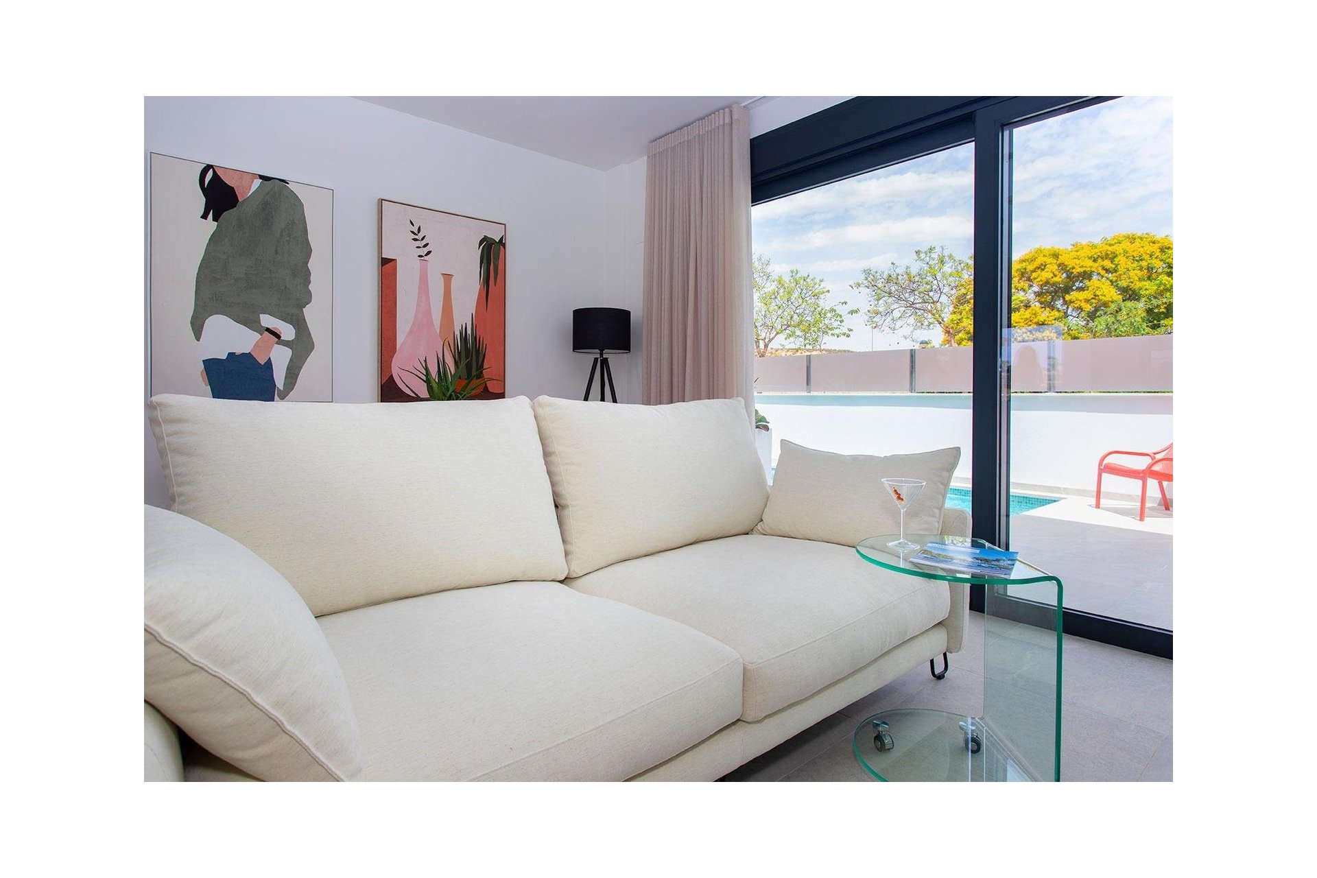 Rynek Pierwotny wille w zabudowie bliźniaczej we współczesnym stylu o czystym i eleganckim designie, z rozmieszczeniem zorientowanym na śródziemnomorskie światło, które przenika całe wnętrze domu. Z otwartymi strefami dziennymi, w których kuchnia łączy się z salonem, tworząc ciągłe środowisko ograniczone centralną wyspą, niesamowitą przestrzenią do delektowania się śniadaniem lub posiłkiem każdego dnia.
