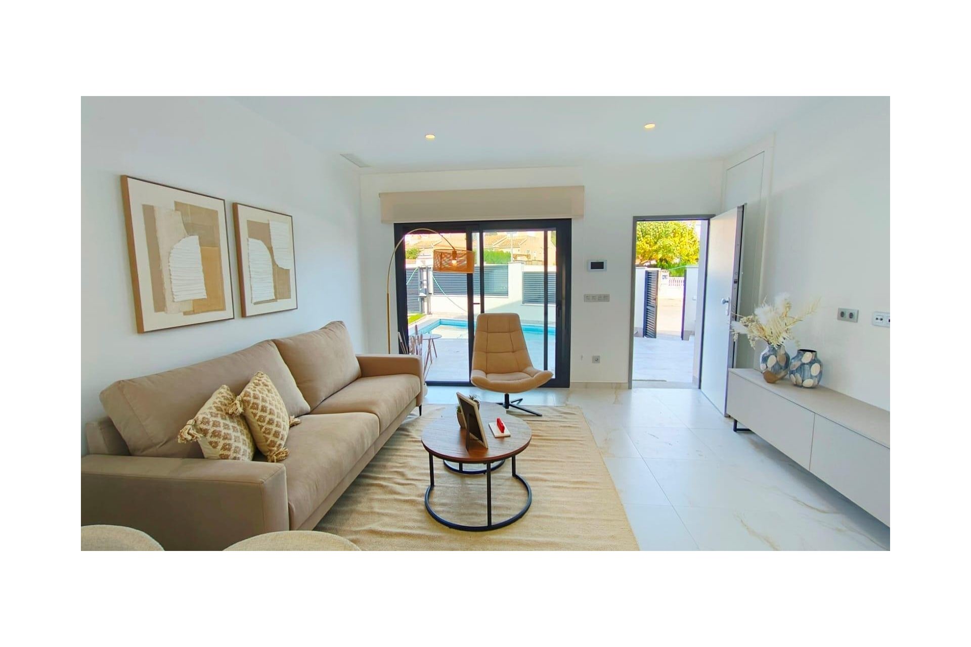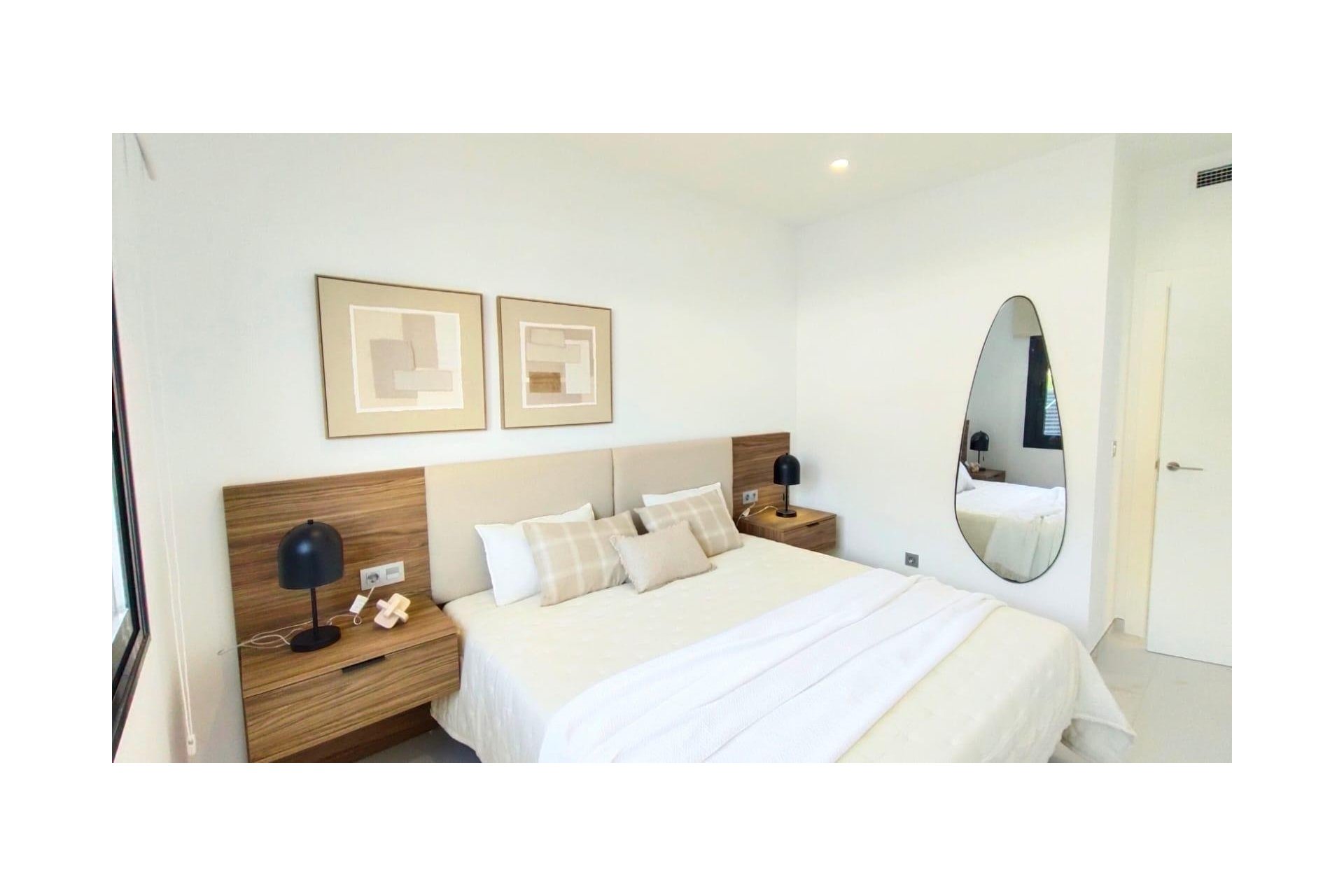 Niewielka inwestycja składająca się z zaledwie 5 willi, zbudowanych na jednym piętrze z 3 sypialniami i 2 łazienkami, salonem i jadalnią na otwartym planie, w pełni wyposażoną kuchnią z centralną wyspą i widokiem na prywatny basen, na niezależnych działkach o powierzchni od