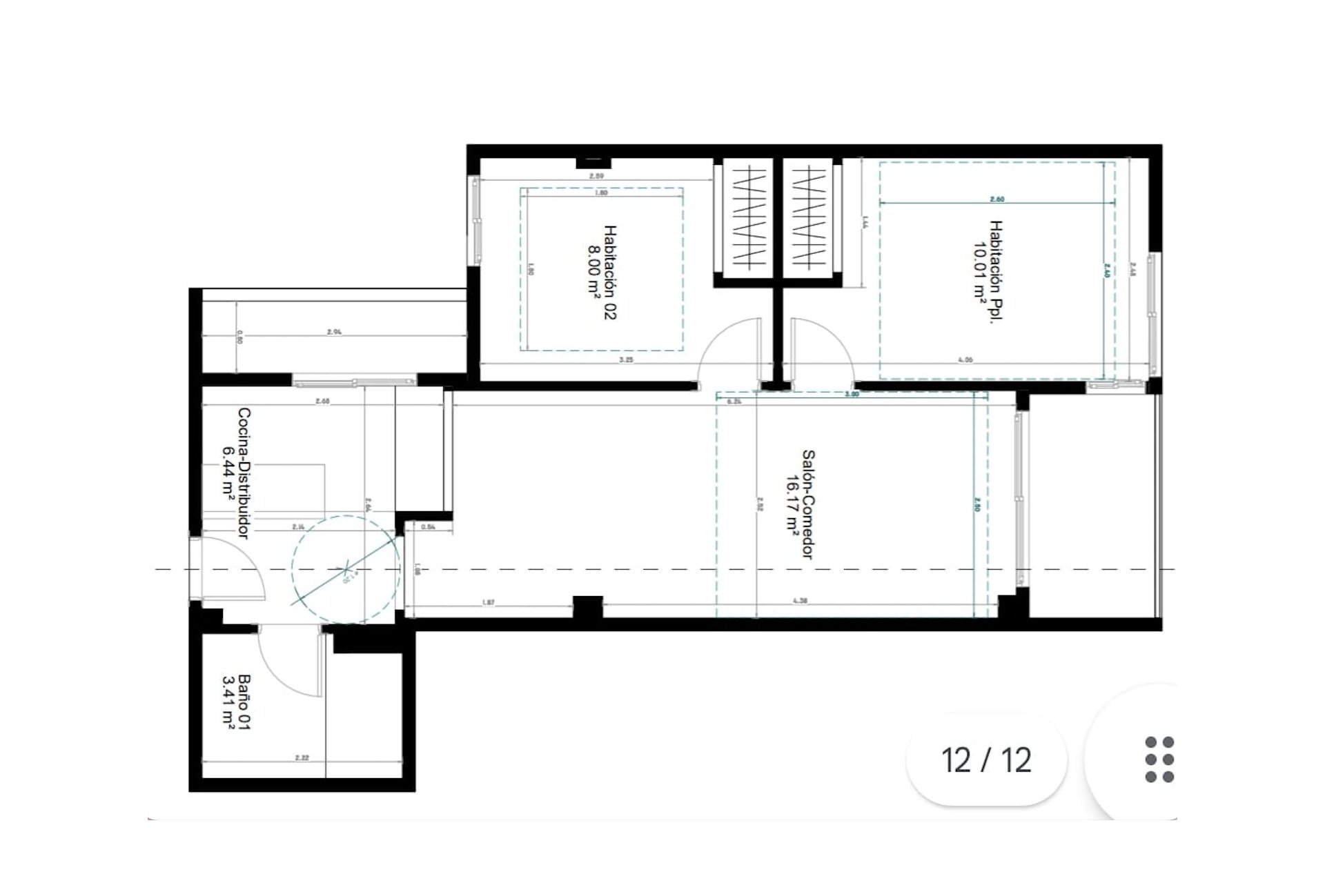 Apartament składa się z dwóch sypialni z wbudowanymi szafami, jednej łazienki, otwartej kuchni, salonu z jadalnią oraz pomieszczenia gospodarczego z wejściem z kuchni. Z salonu jest wyjście na taras z widokiem na części wspólne.