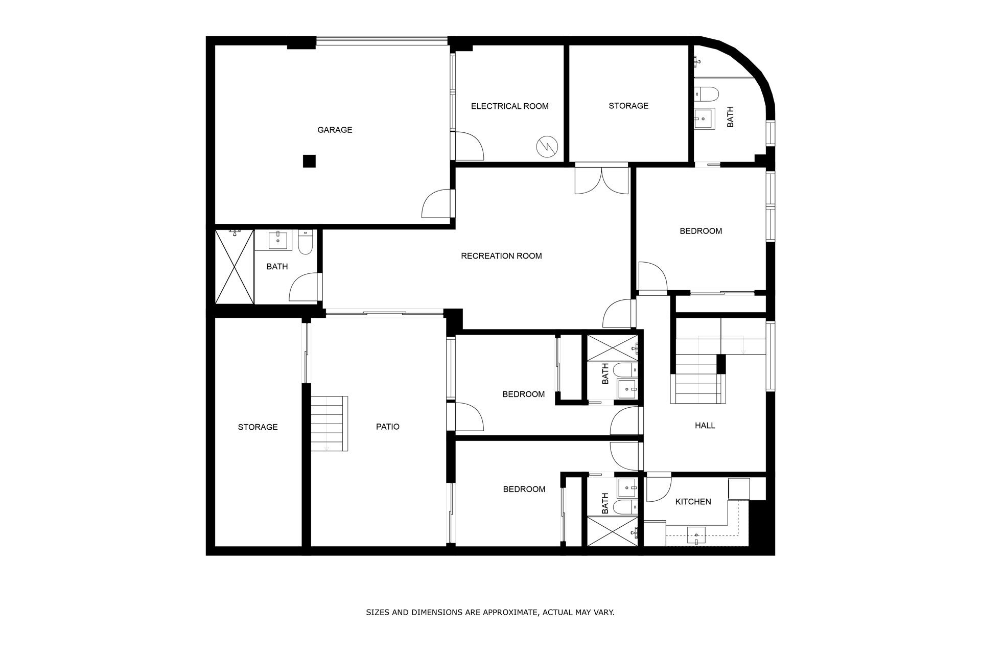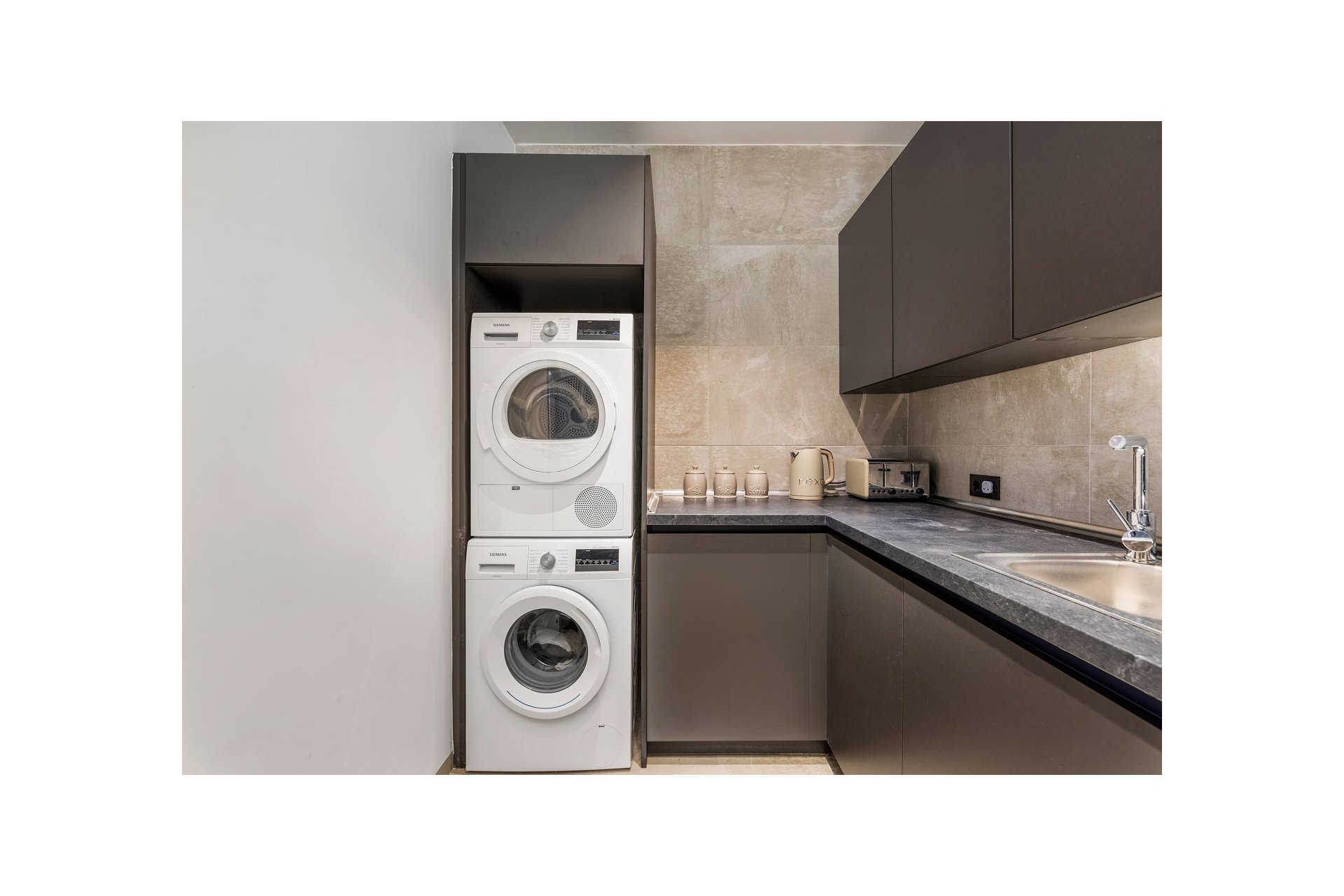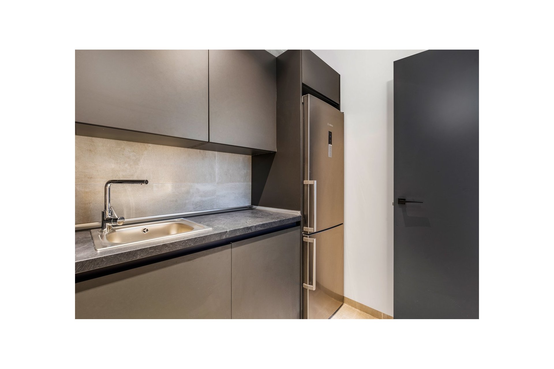 Dolny poziom składa się z trzech sypialni z łazienkami, kuchni i pomieszczenia gospodarczego, dużego salonu, łazienki, dwóch komórek lokatorskich. Pokoje na tym poziomie mają dostęp do uroczego patio.