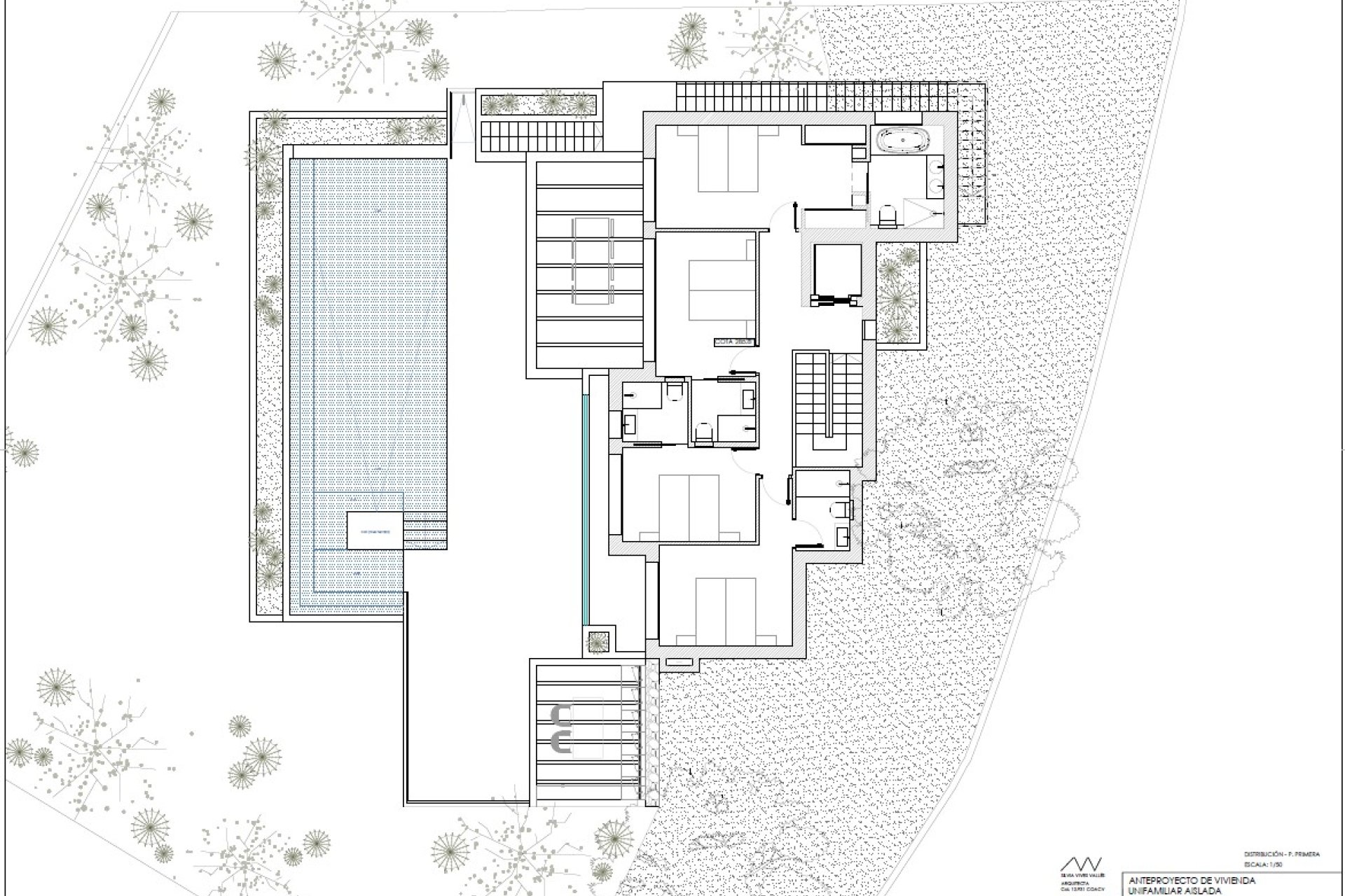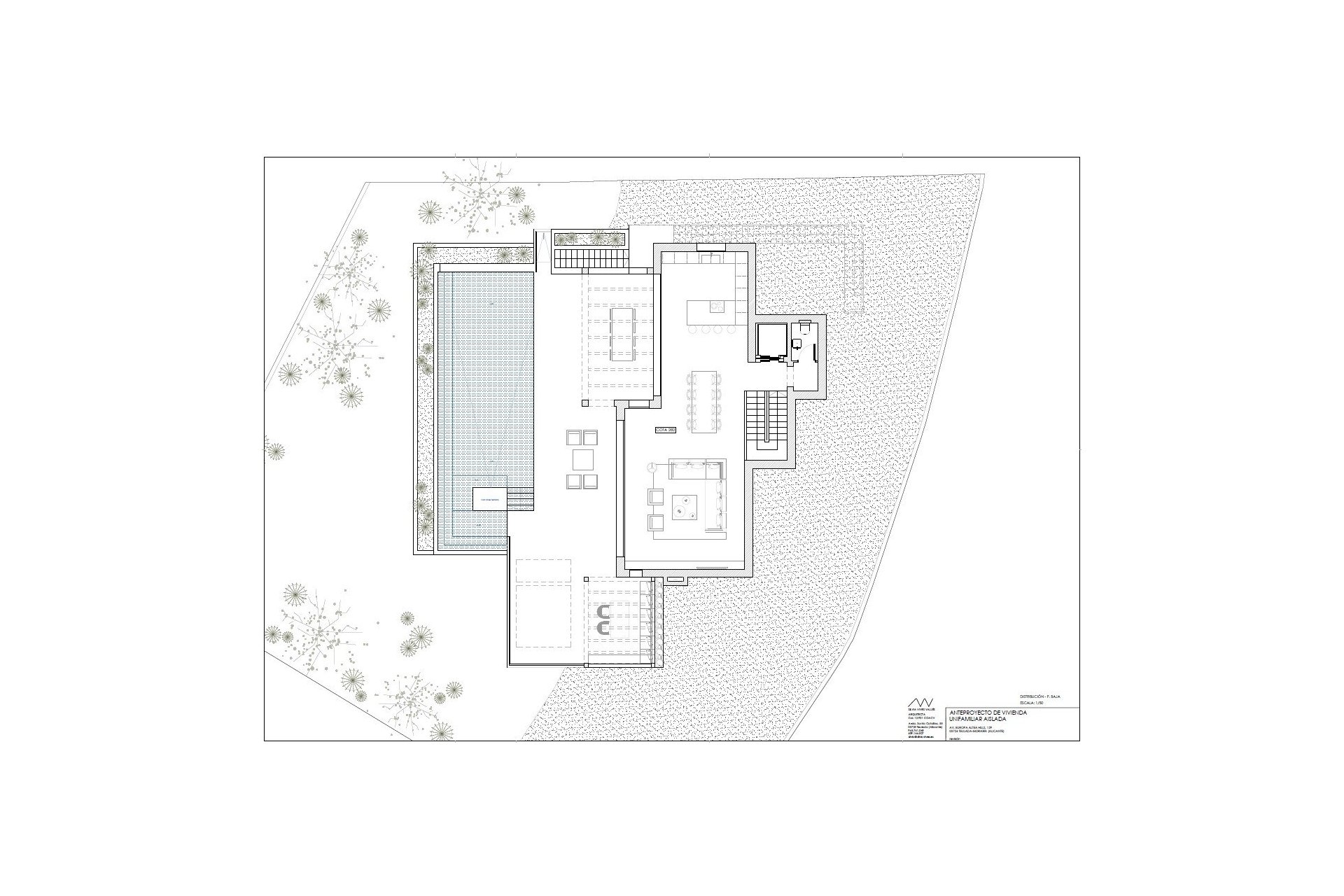 Dom ma 3 wysokości, oprócz piwnicy, i jest rozłożony w następujący sposób: w piwnicy znajduje się siłownia, pomieszczenie gospodarcze, pokój z łazienką i gabinet. Na parterze znajduje się łazienka, salon na otwartym planie, jadalnia i kuchnia. Basen i taras również znajdują się na tym piętrze, z różnymi miejscami do siedzenia na tarasie. Na pierwszym piętrze znajdziemy 4 sypialnie, 4 łazienki. Dwa z nich mają dostęp do tarasu z widokiem na basen i morze. Na drugim i najwyższym piętrze (które znajduje się na poziomie ulicy) znajduje się taras z niesamowitymi widokami oraz miejsce parkingowe na kilka samochodów.
