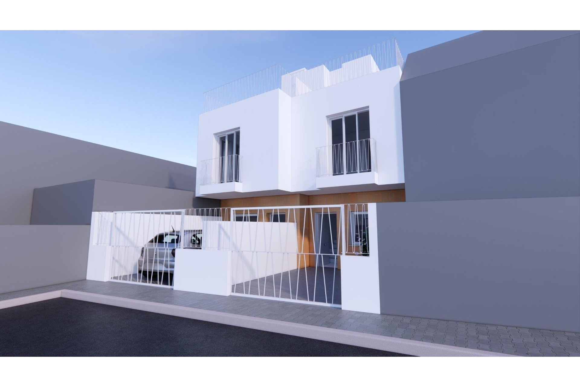 Każdy dom szeregowy ma dwa piętra oraz prywatne solarium na dachu z otwartym widokiem na Morze Śródziemne. Na parterze znajduje się jasna, otwarta część dzienna z jadalnią i kuchnią, zaprojektowana tak, aby maksymalnie wykorzystać naturalne światło i zapewnić komfort. Na tym poziomie znajduje się również w pełni wyposażona łazienka i bezpośredni dostęp do prywatnego ogrodu. Ogród oferuje elastyczność, ponieważ może służyć jako parking lub za dodatkową opłatą można go przekształcić w prywatny basen.