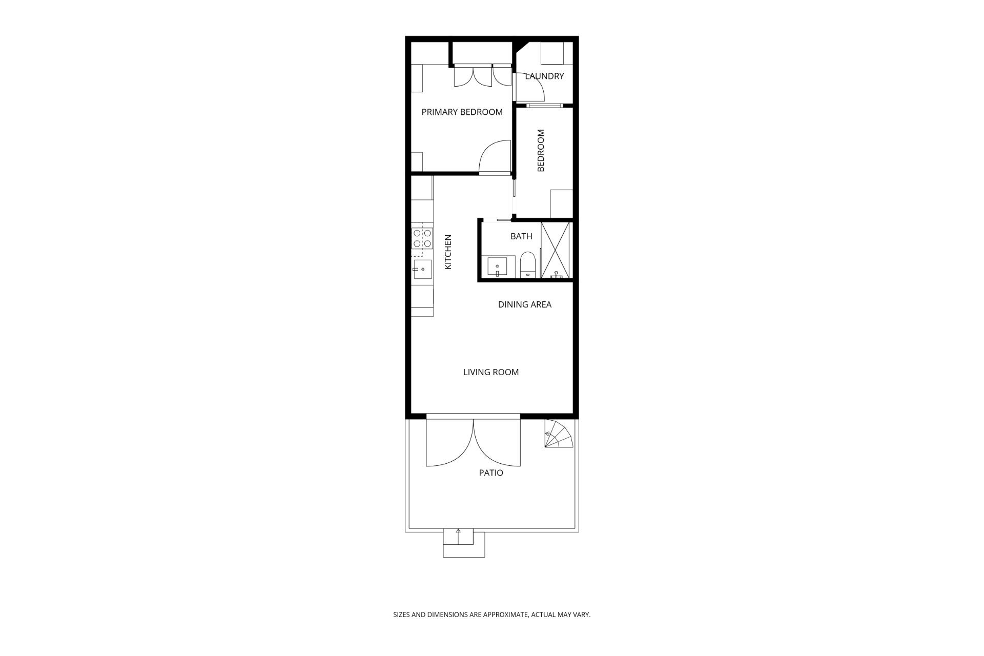 Układ obejmuje 2 sypialnie, w pełni wyposażoną łazienkę oraz przyjemną, otwartą przestrzeń salonu z jadalnią i w pełni wyposażoną kuchnią. Kuchnia otwiera się na część dzienną, tworząc funkcjonalne i przytulne miejsce do codziennego życia.