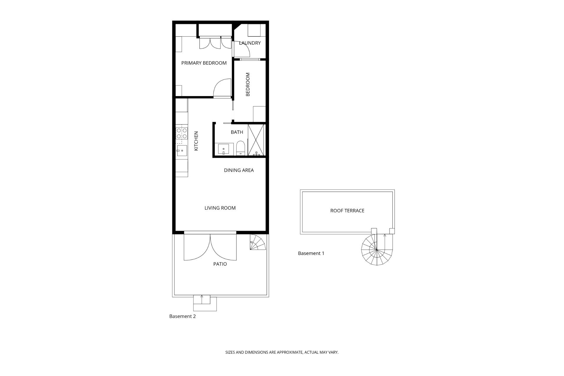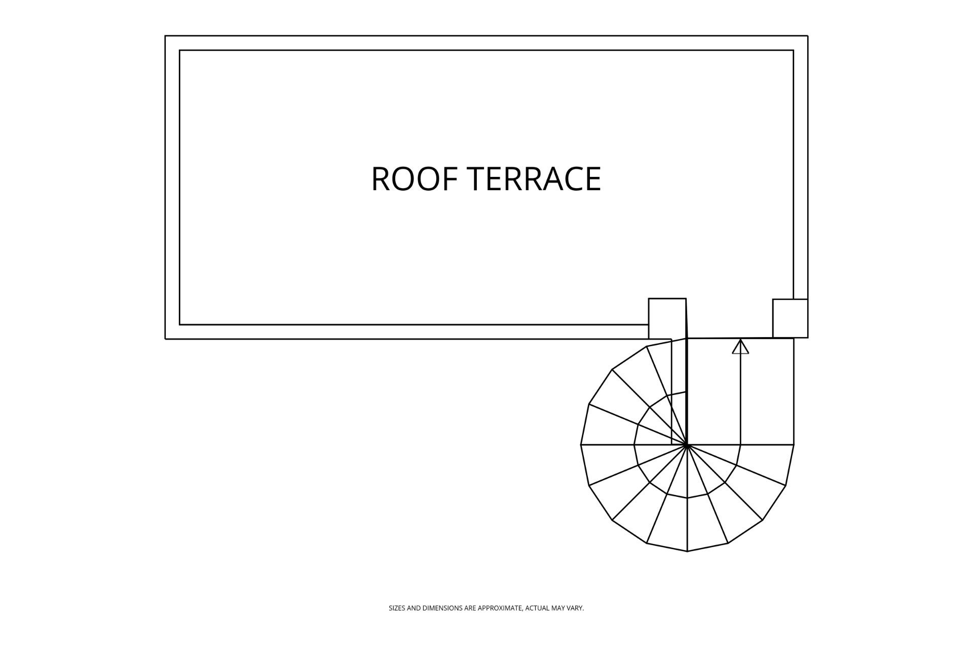 Na zewnątrz nieruchomość znajduje się w spokojnej dzielnicy mieszkalnej z niezależnym wejściem z ulicy. Zewnętrzne schody prowadzą na przestronne solarium na dachu, idealne do opalania, podziwiania widoków lub stworzenia strefy chill-out.